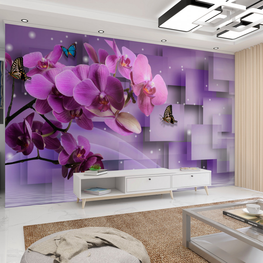 Tapeta Fototapeta bukiet orchidei i delikatnych motyli (artykuł a91304 ) z kategorii Fototapety 3D