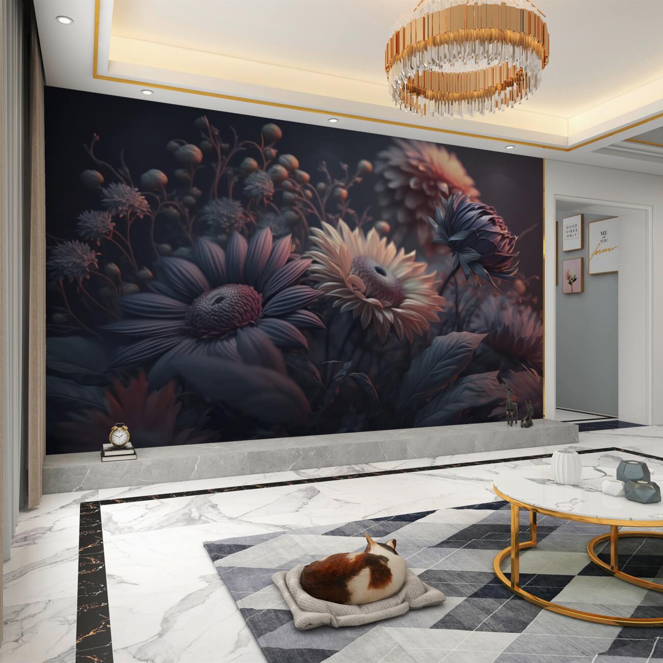Tapeta Fototapeta Bukiet rumianku i pionii 3D (artykuł u11713 ) z kategorii Fototapety 3D