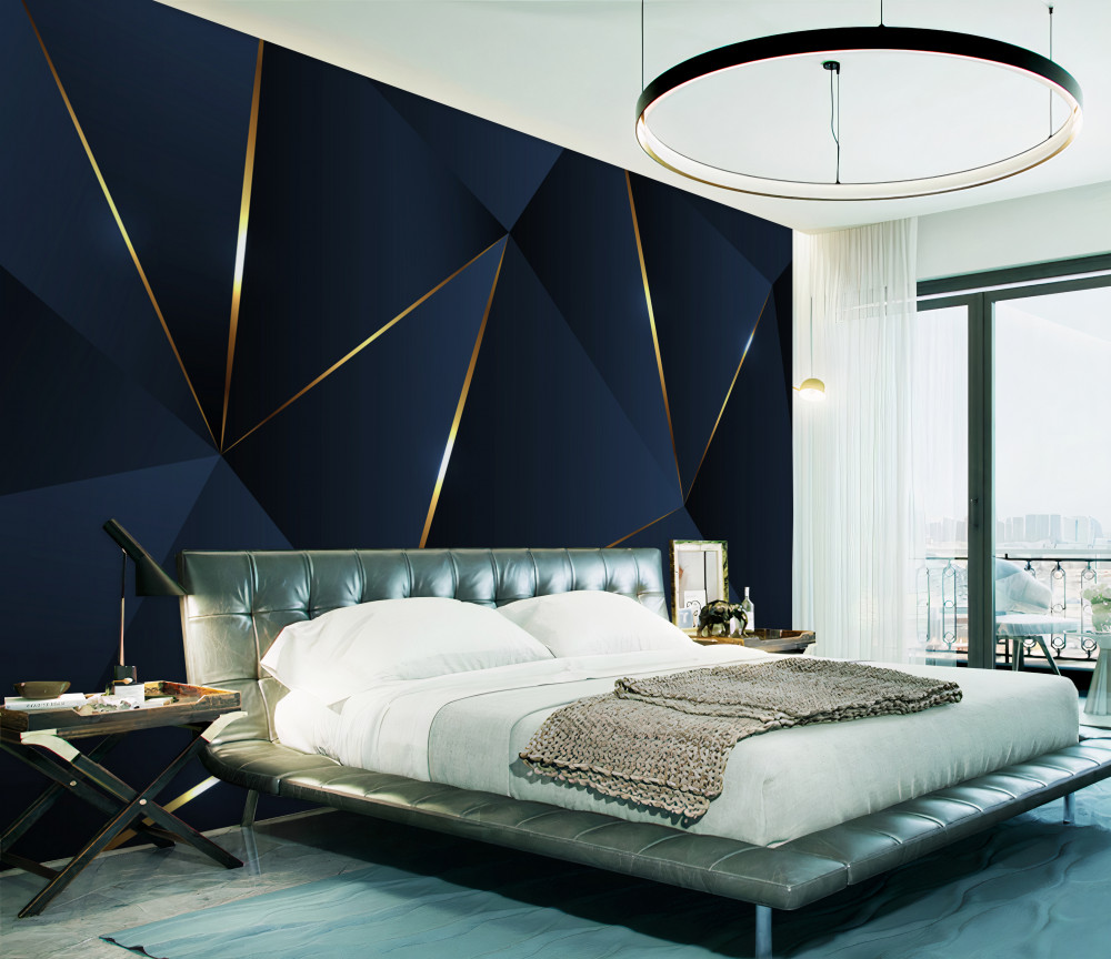 Tapeta Fototapeta ciemnoniebieskie trójkąty ze złotymi krawędziami (artykuł a93189 ) z kategorii Fototapety 3D