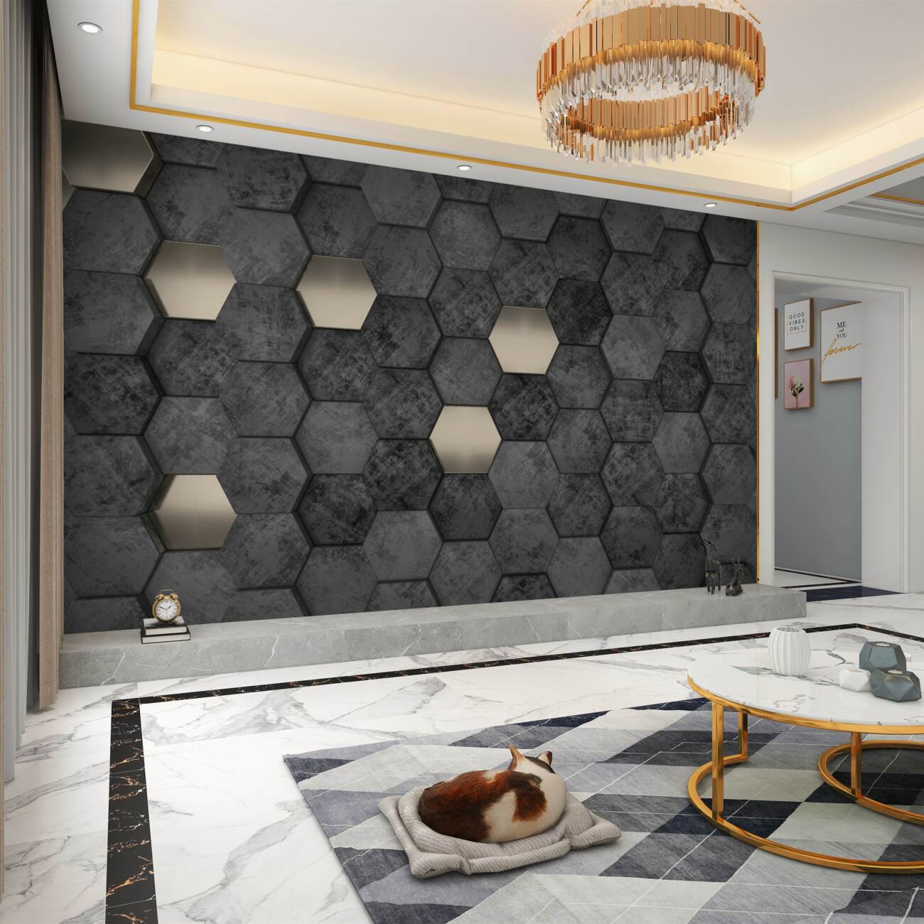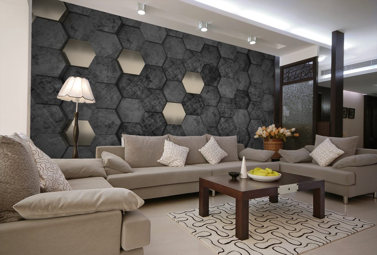 Tapeta Fototapeta Ciemnoszara ściana w sześciokątach (artykuł u10145 ) z kategorii Fototapety 3D