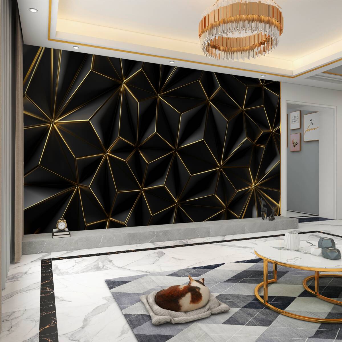 Tapeta Fototapeta Czarne figury wolumetryczne w kolorze złotym (artykuł a98460 ) z kategorii Fototapety 3D