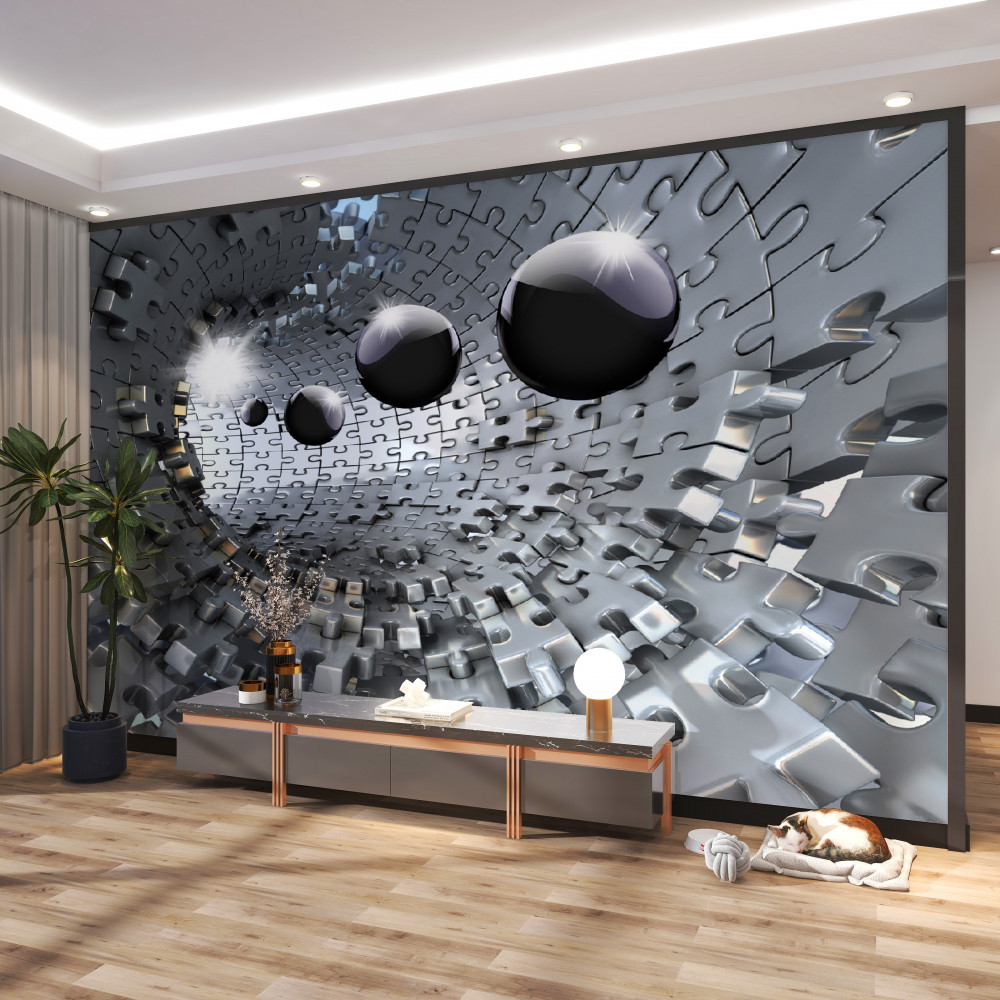 Tapeta Fototapeta czarne kule przesuwające się w perspektywę (artykuł a91556 ) z kategorii Fototapety 3D