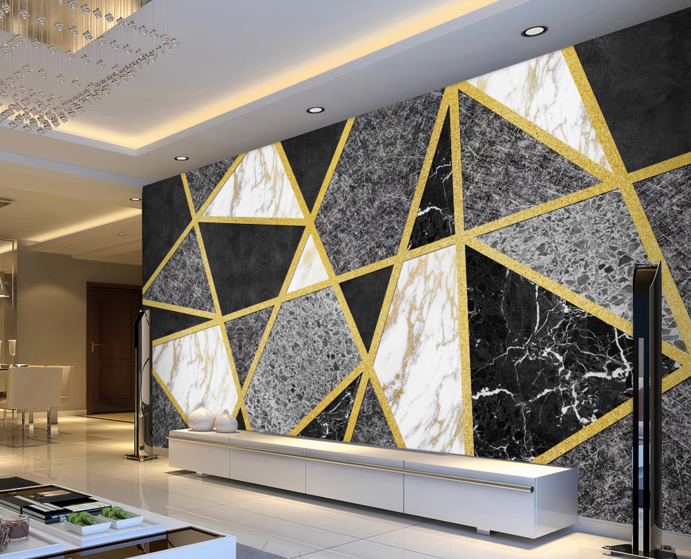 Tapeta Fototapeta czarno-biała mozaika ze złotem (artykuł a92804 ) z kategorii Fototapety 3D