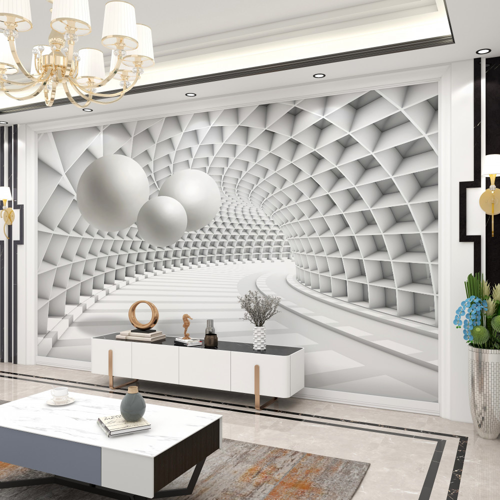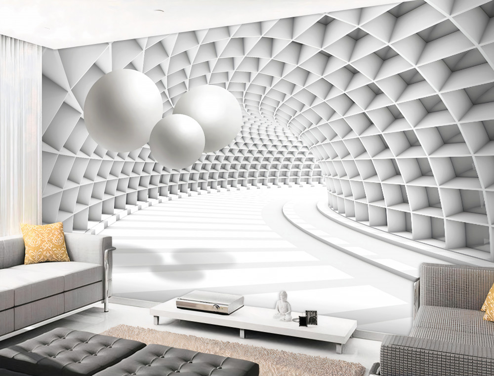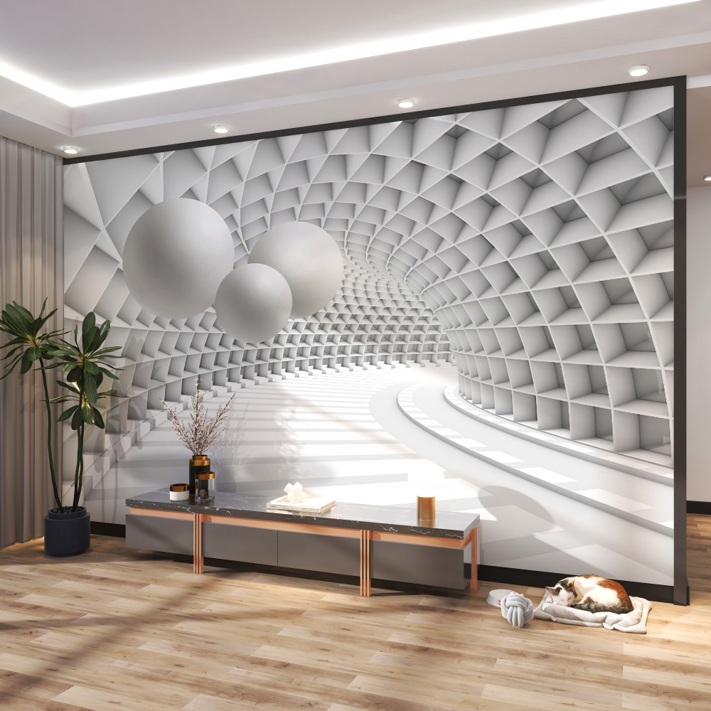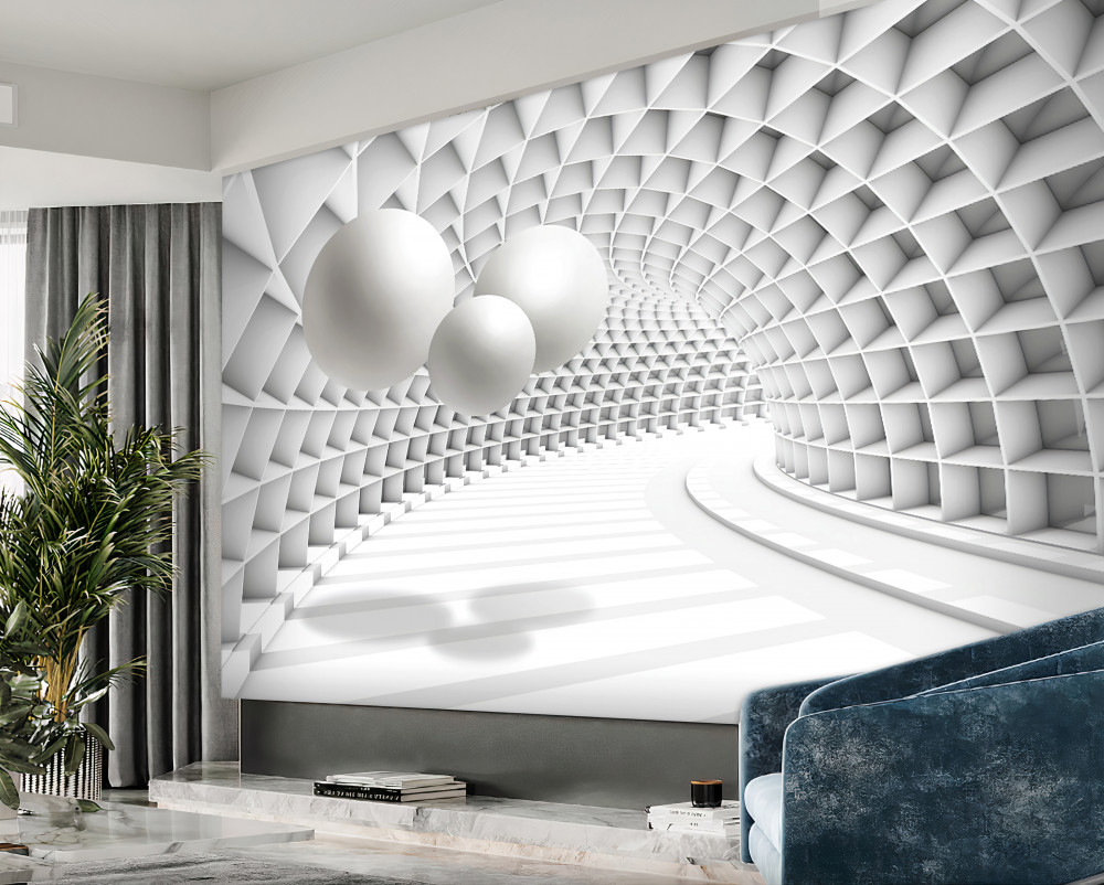 Tapeta Fototapeta czarno-białe kulki i perspektywa tunelu (artykuł a91476 ) z kategorii Fototapety 3D