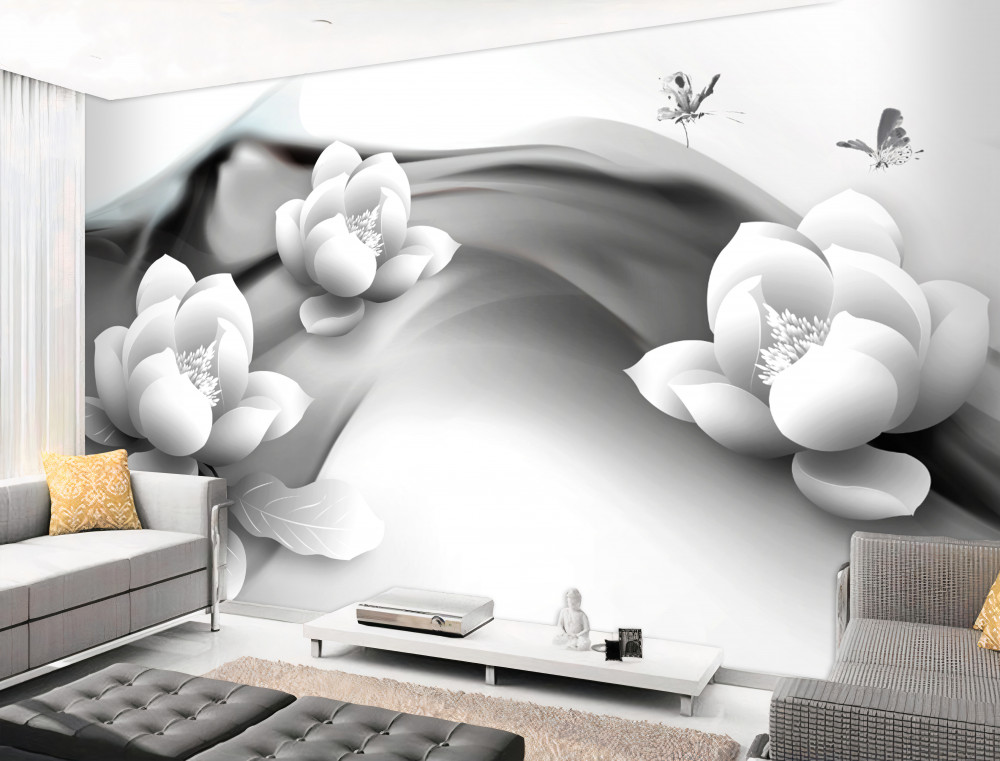 Tapeta Fototapeta czarno-białe lilie wodne (artykuł a91288 ) z kategorii Fototapety 3D