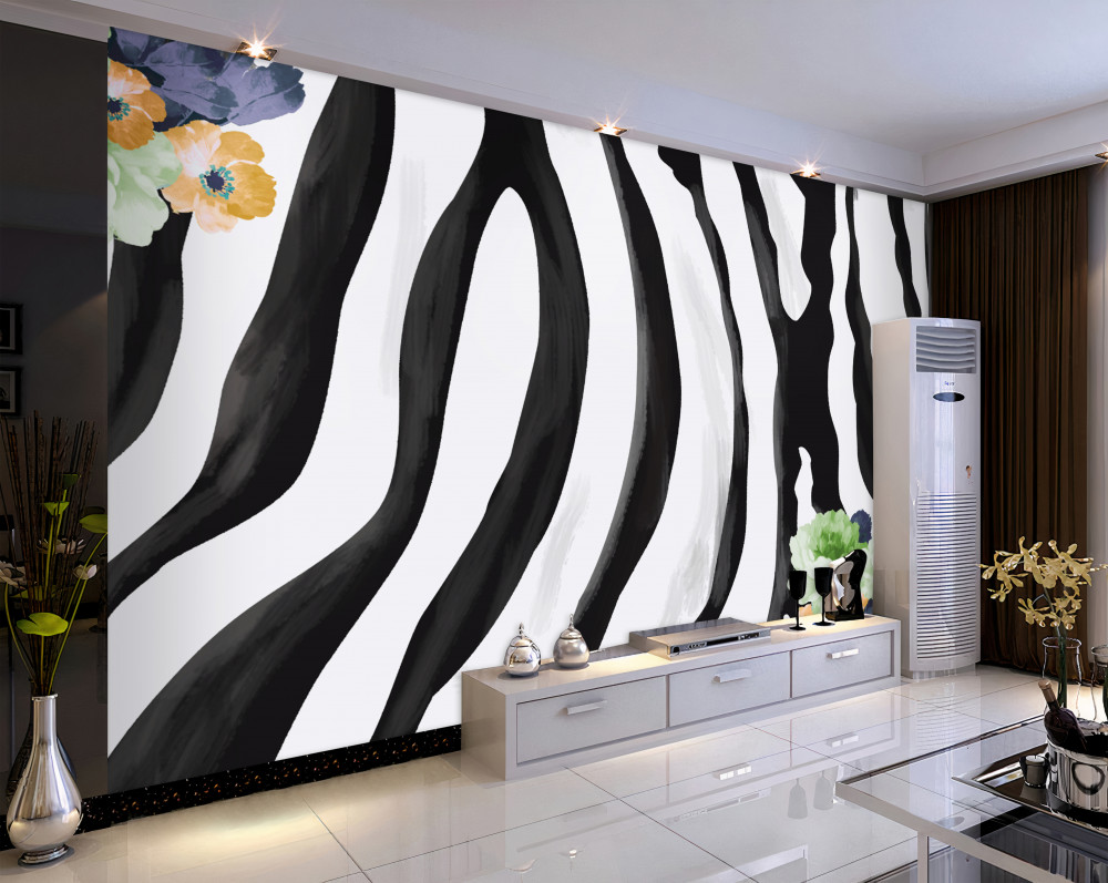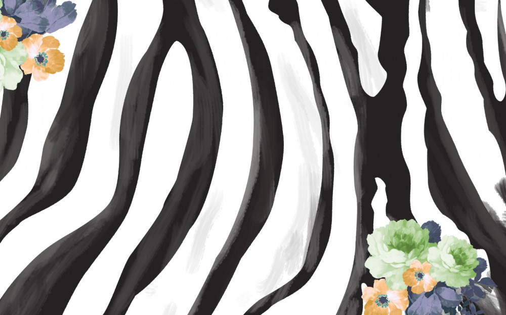 Tapeta Fototapeta czarno-białe tło w kwiatowe paski (artykuł a91857 ) z kategorii Fototapety 3D