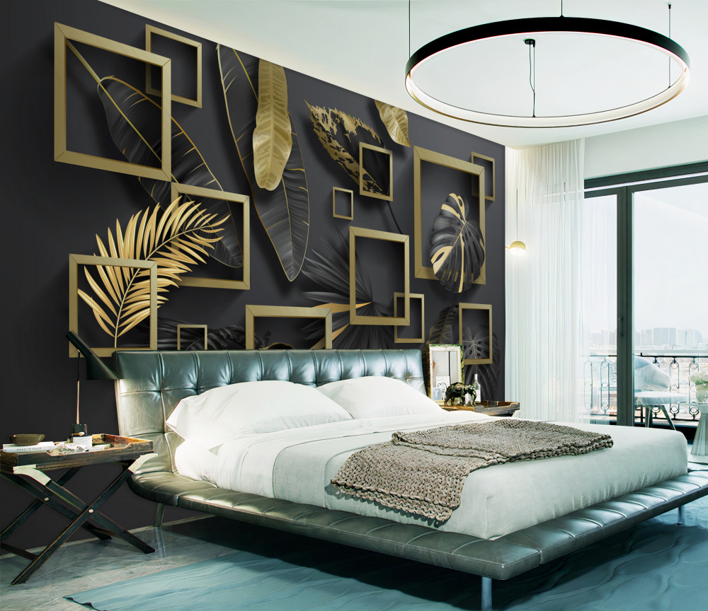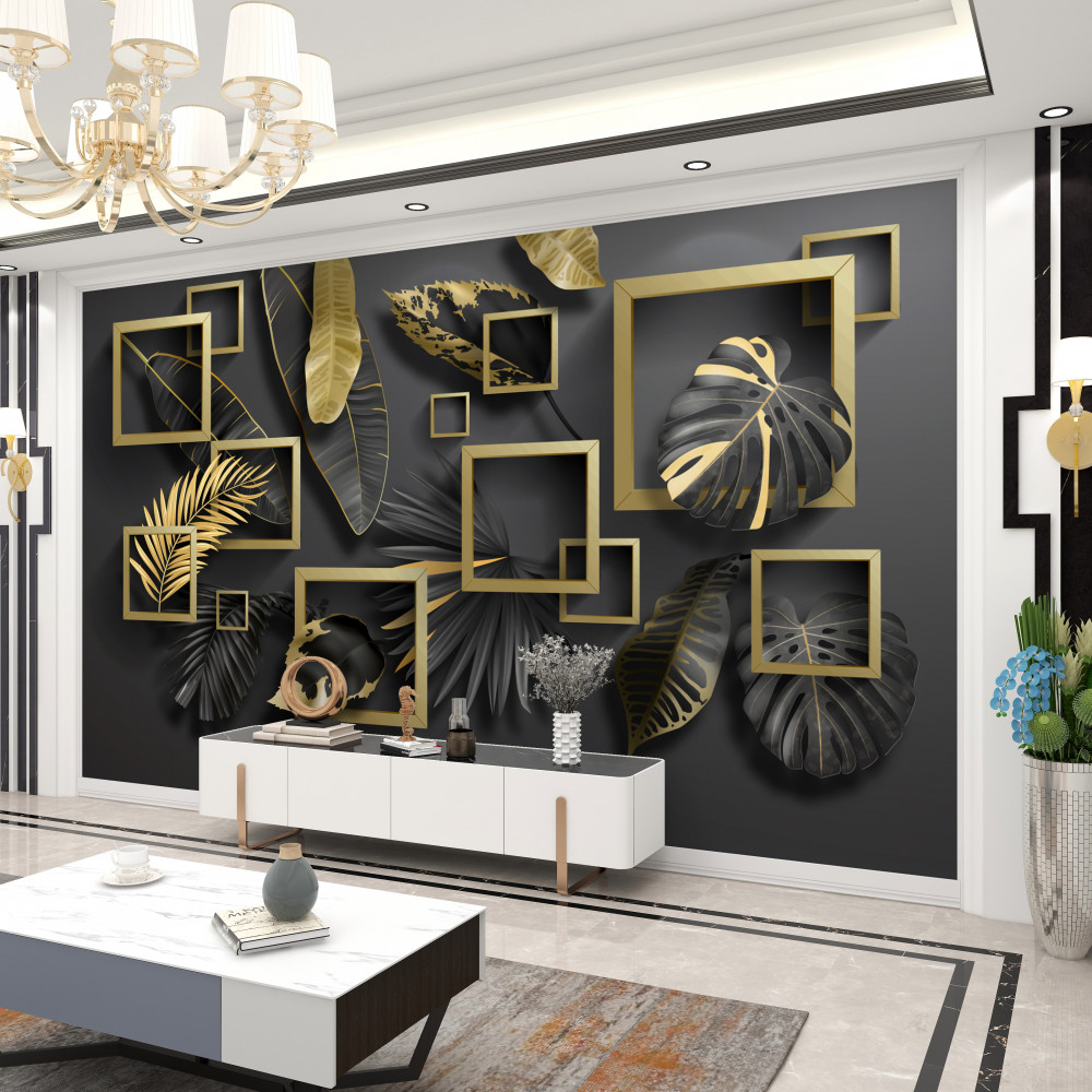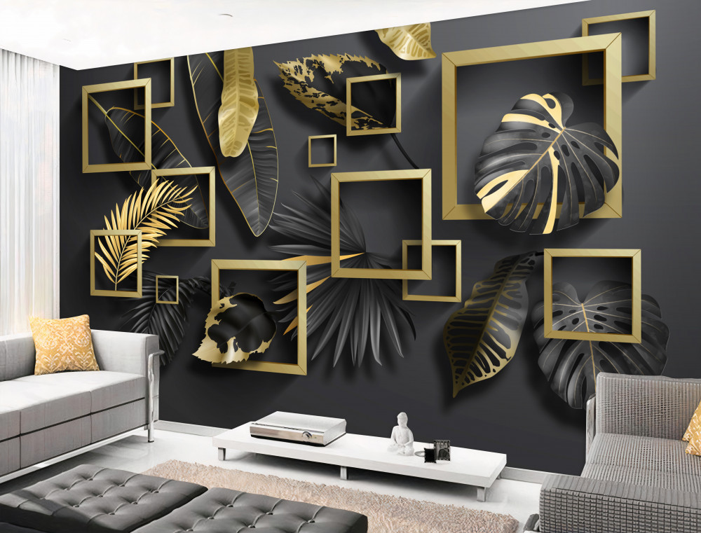 Tapeta Fototapeta czarno-złote pióra w ramkach (artykuł a90024 ) z kategorii Fototapety 3D