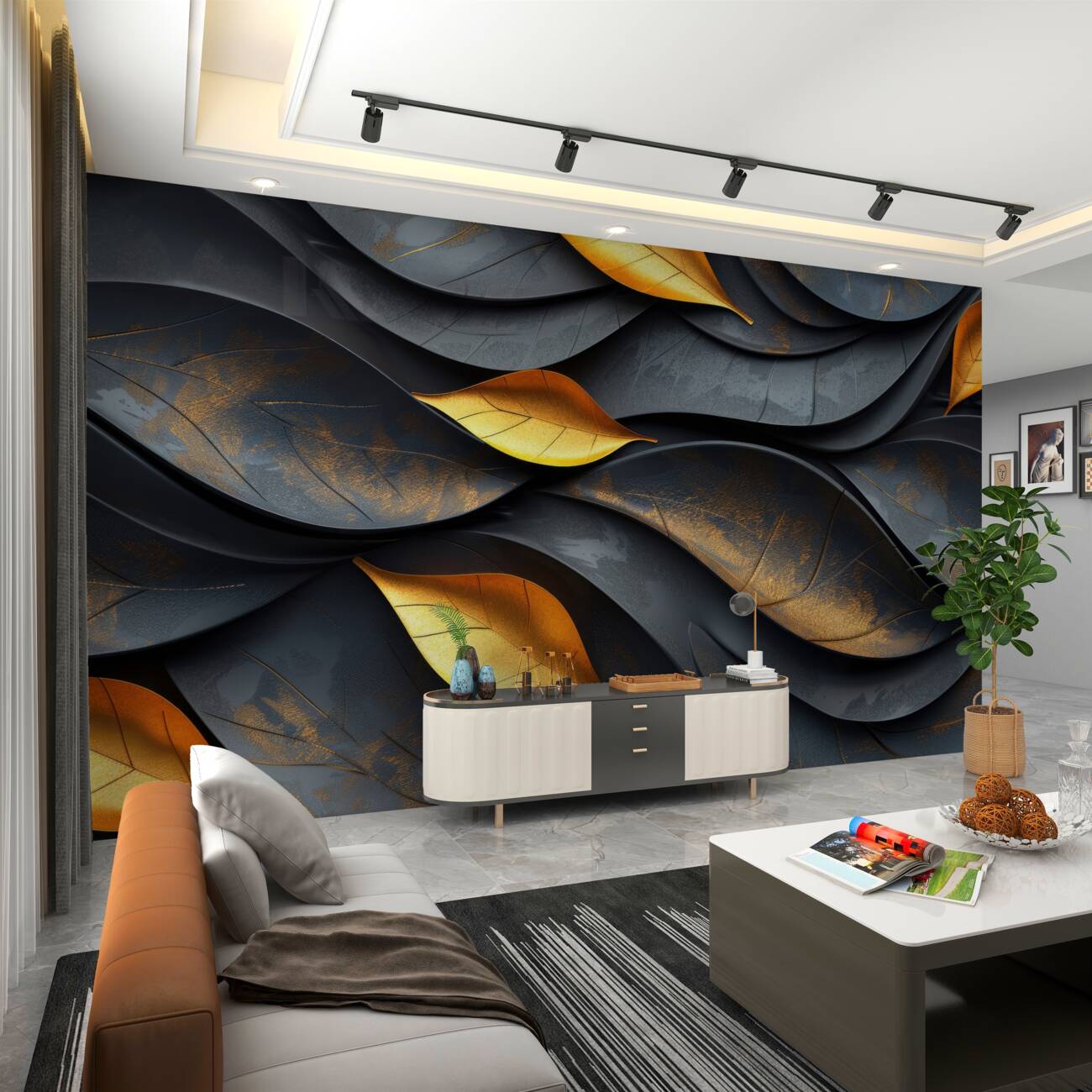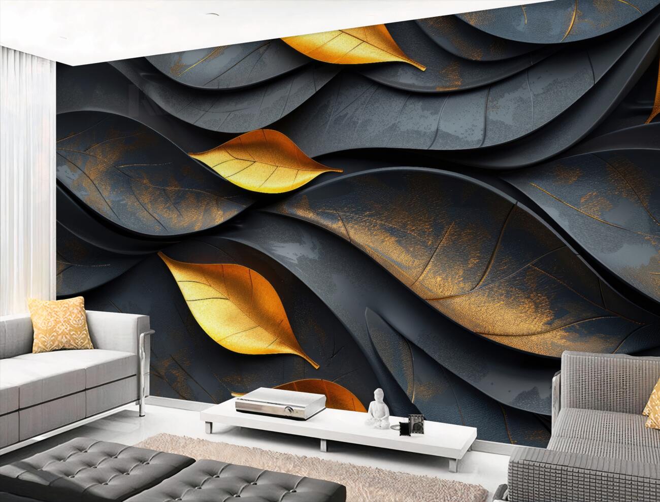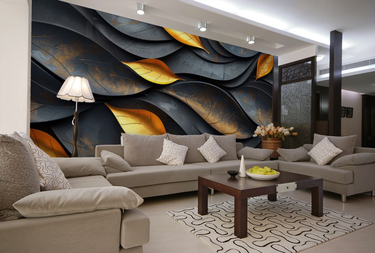 Tapeta Fototapeta Czarny i złoty jesienny metal liściowy (artykuł u10204 ) z kategorii Fototapety 3D