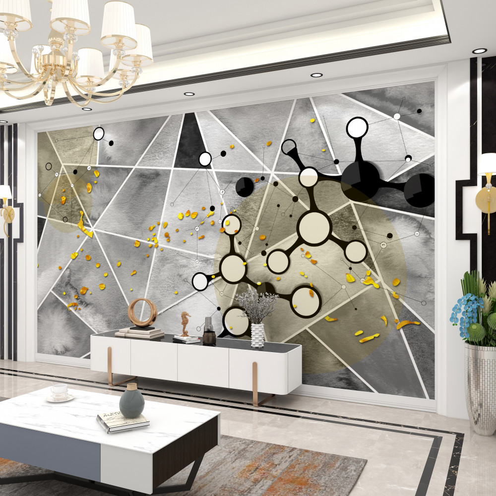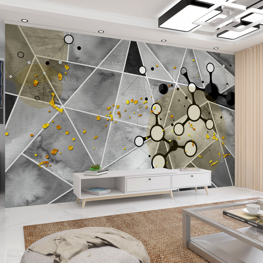 Tapeta Fototapeta cząsteczki na szarym marmurze ze złotem (artykuł pb5563 ) z kategorii Fototapety 3D