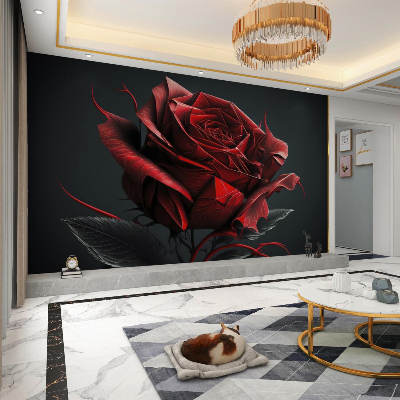 Tapeta Fototapeta Czerwona róża wykonana z metalu (artykuł u11290 ) z kategorii Fototapety 3D