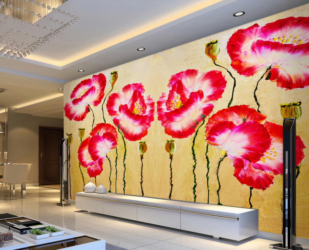 Tapeta Fototapeta czerwone i białe maki oraz ich pąki (artykuł a92041 ) z kategorii Fototapety 3D