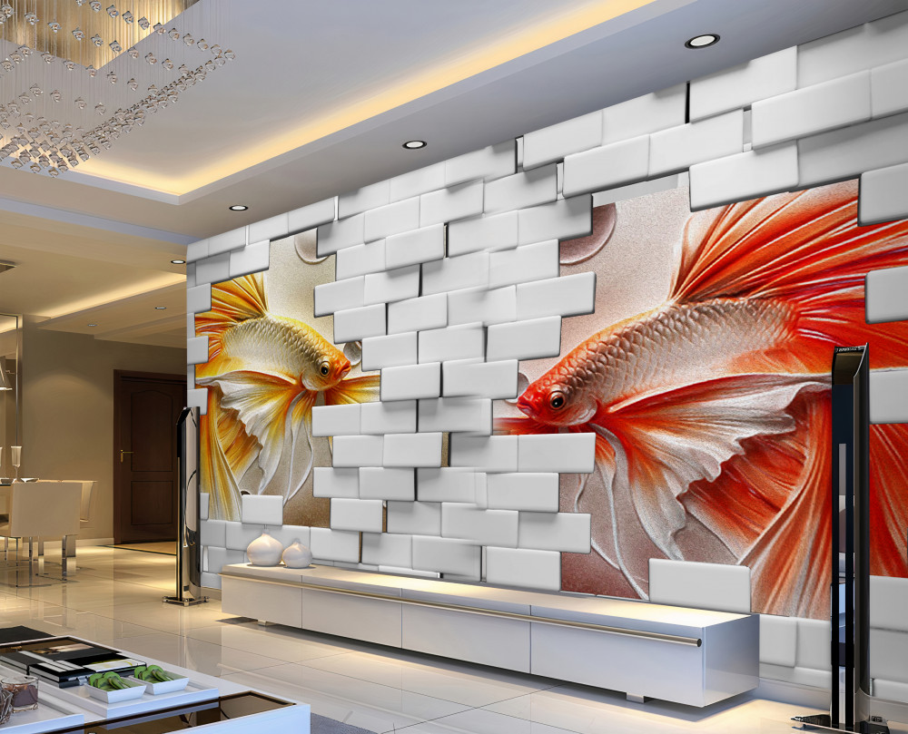 Tapeta Fototapeta czerwone i pomarańczowe postacie rozbijają cegłę (artykuł pb10005 ) z kategorii Fototapety 3D