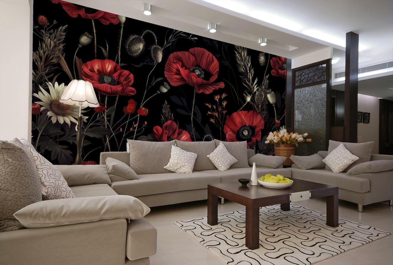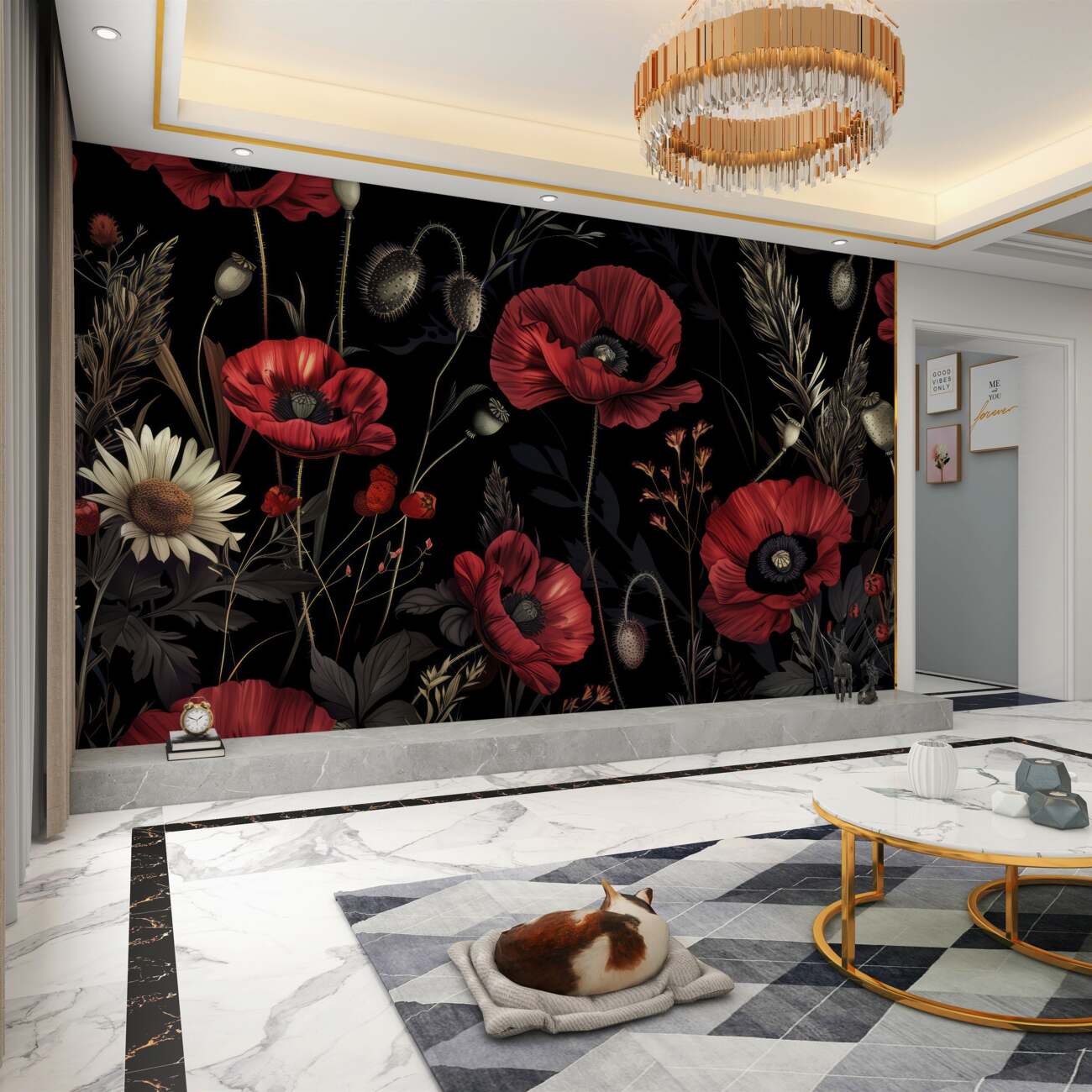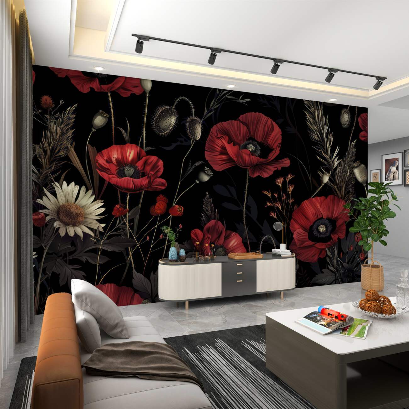 Tapeta Fototapeta Czerwone make i stokrotki (artykuł u11487 ) z kategorii Fototapety 3D