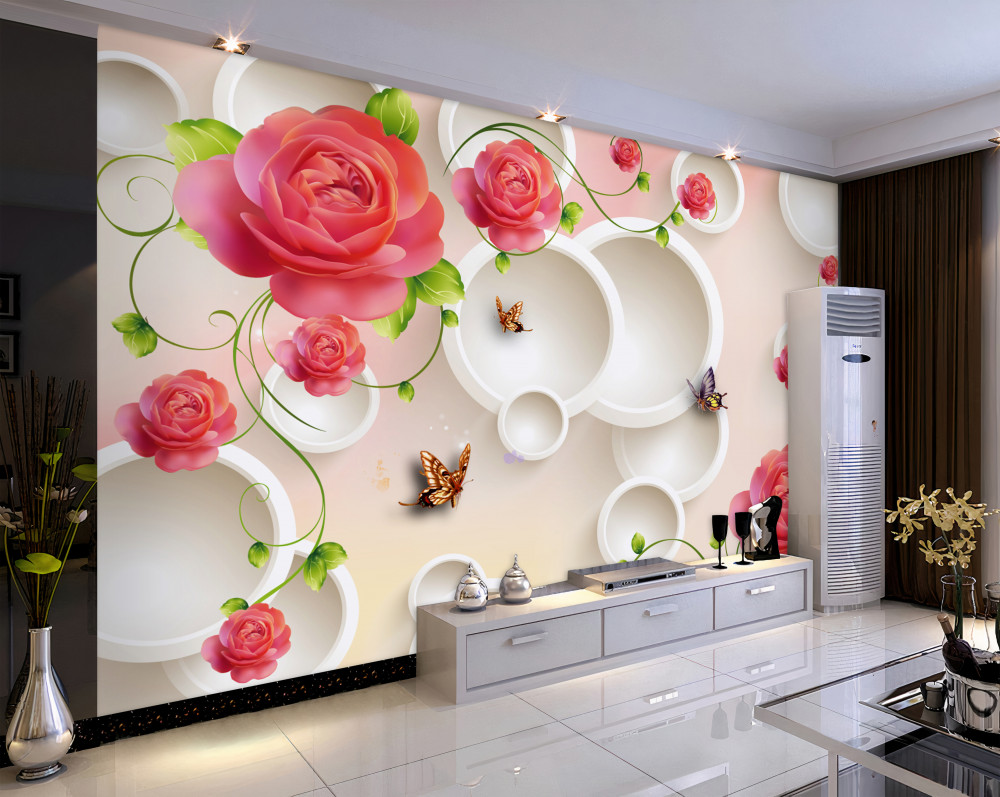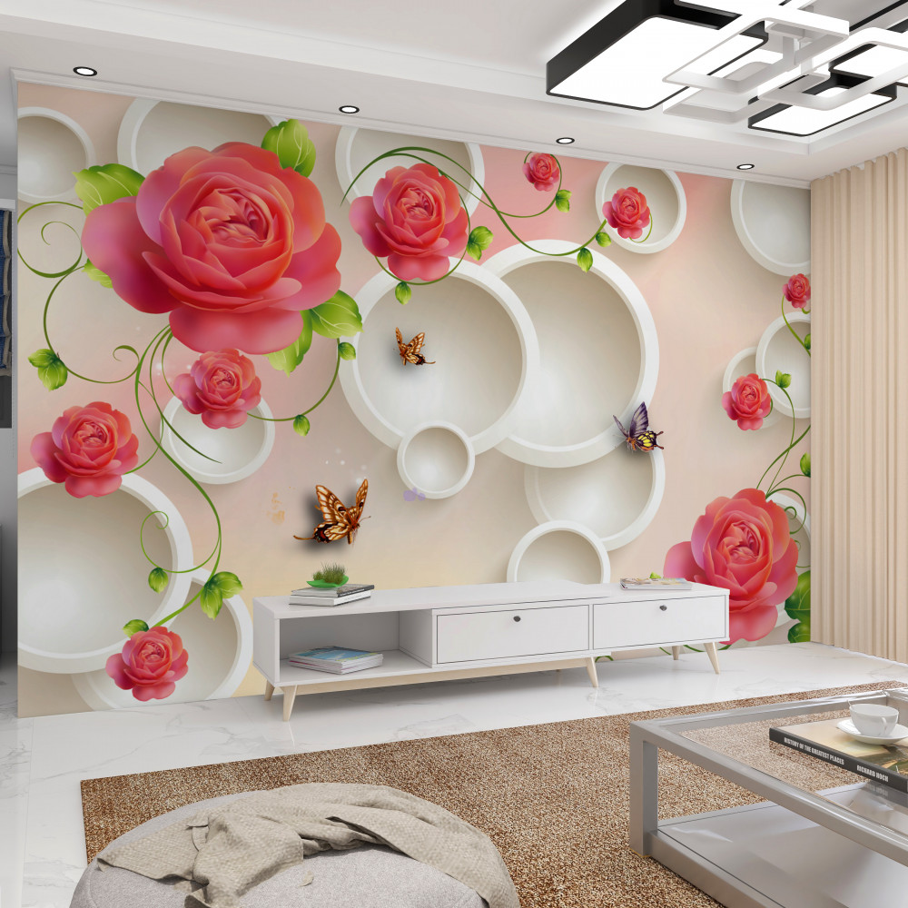 Tapeta Fototapeta czerwone róże i białe kółka (artykuł a90066 ) z kategorii Fototapety 3D