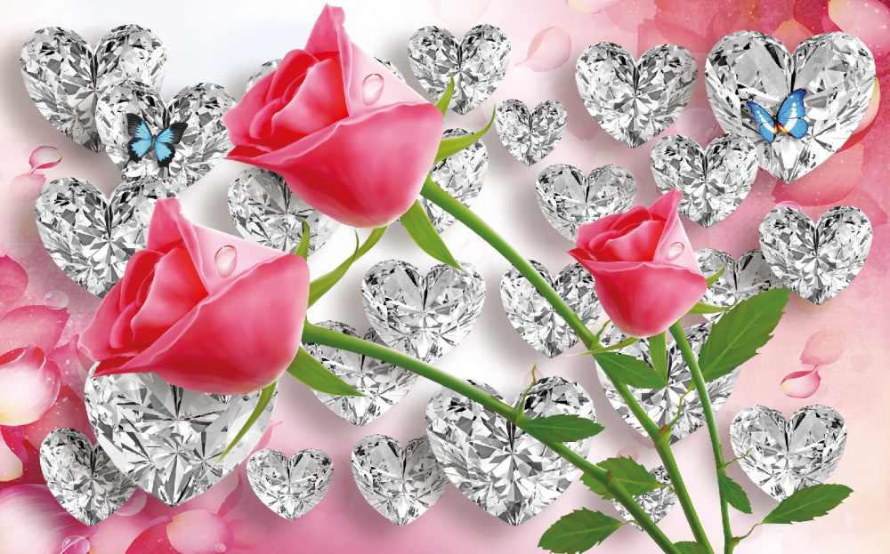 Tapeta Fototapeta czerwone róże i diamenty (artykuł a90112 ) z kategorii Fototapety 3D