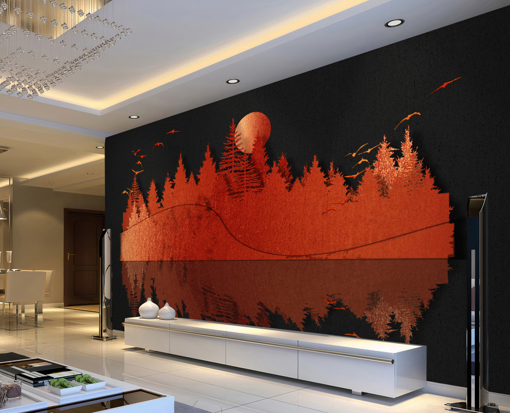 Tapeta Fototapeta czerwony las w odbiciu wody (artykuł pb6671 ) z kategorii Fototapety 3D