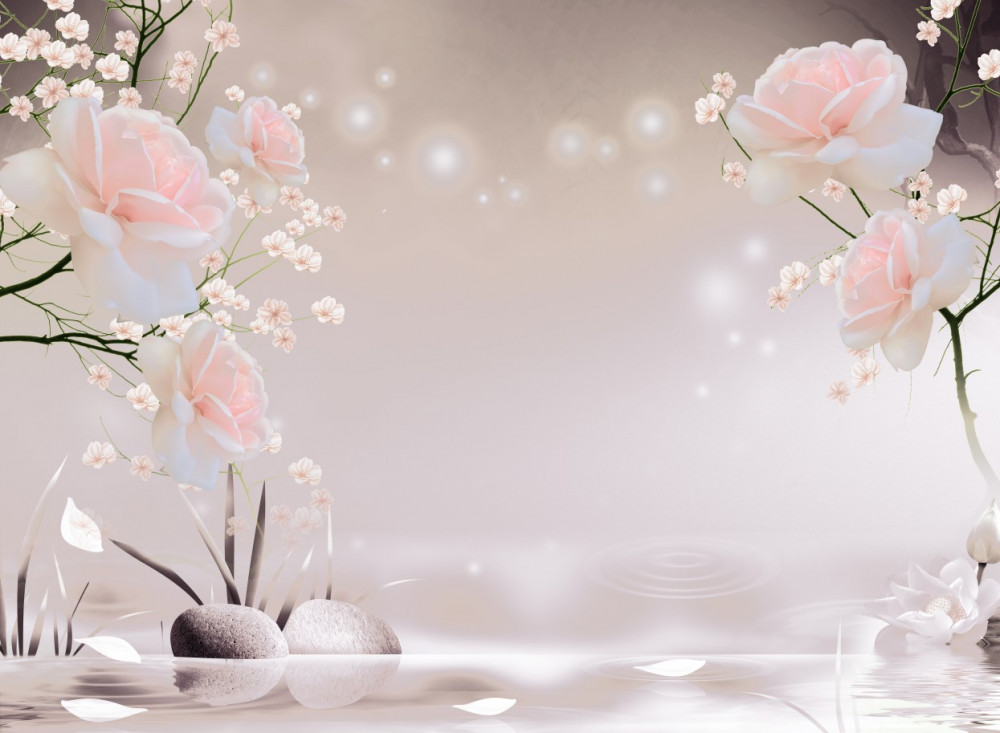 Tapeta Fototapeta delikatna róża herbaciana na gałęziach (artykuł a91079 ) z kategorii Fototapety 3D