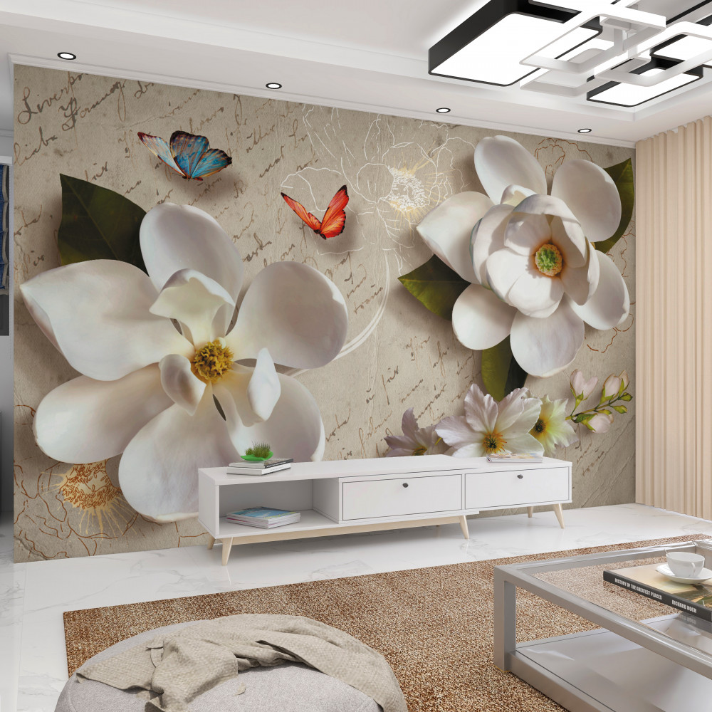 Tapeta Fototapeta delikatne białe kwiaty lotosu z motylami (artykuł a91256 ) z kategorii Fototapety 3D