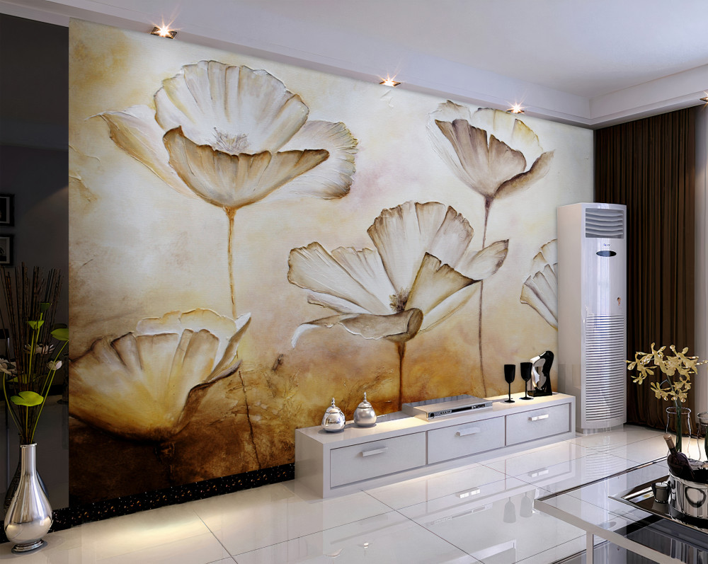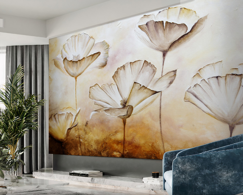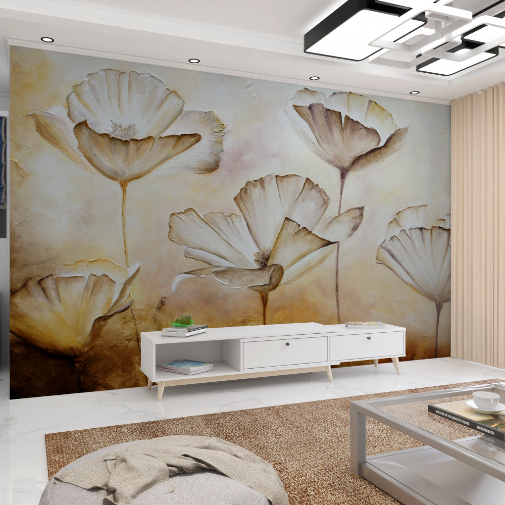 Tapeta Fototapeta delikatne białe maki na brązowym tle (artykuł a93206 ) z kategorii Fototapety 3D