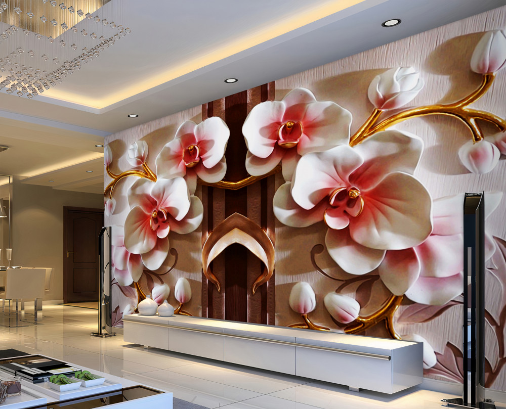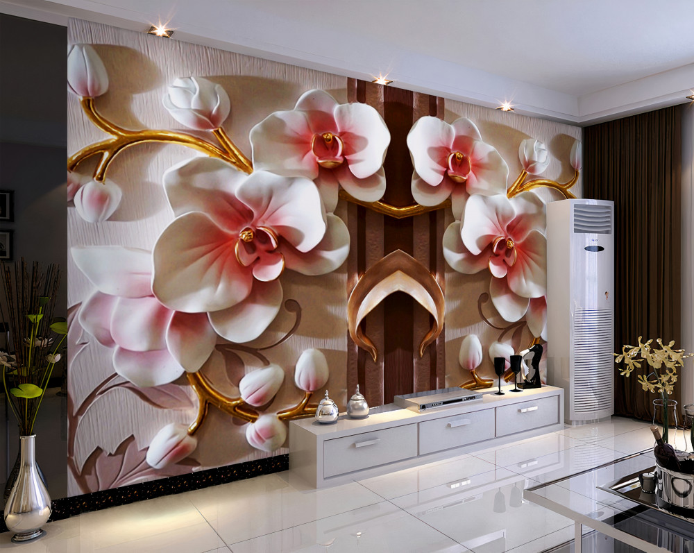 Tapeta Fototapeta delikatne białe orchidee na złotych gałęziach (artykuł a90972 ) z kategorii Fototapety 3D