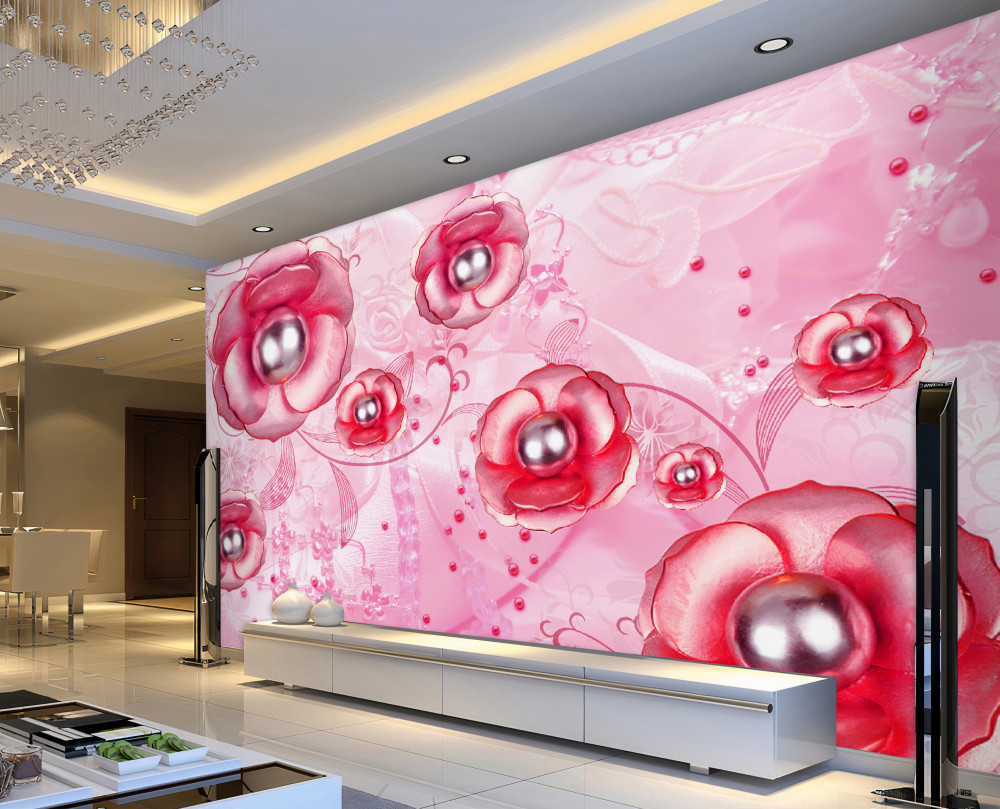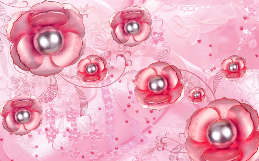 Tapeta Fototapeta delikatne czerwone kwiaty z perłowym rdzeniem (artykuł pb6702 ) z kategorii Fototapety 3D
