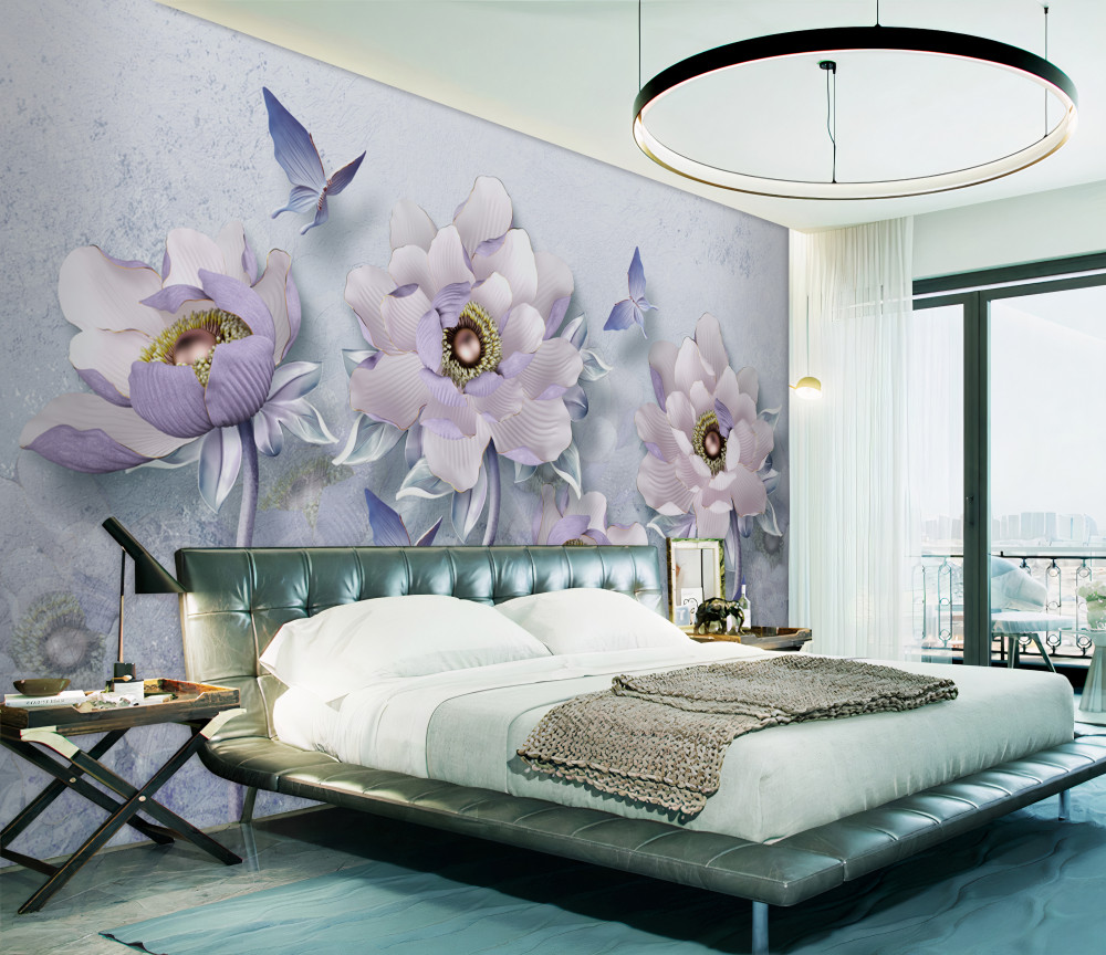 Tapeta Fototapeta delikatne kwiaty i fioletowe motyle (artykuł a93763 ) z kategorii Fototapety 3D