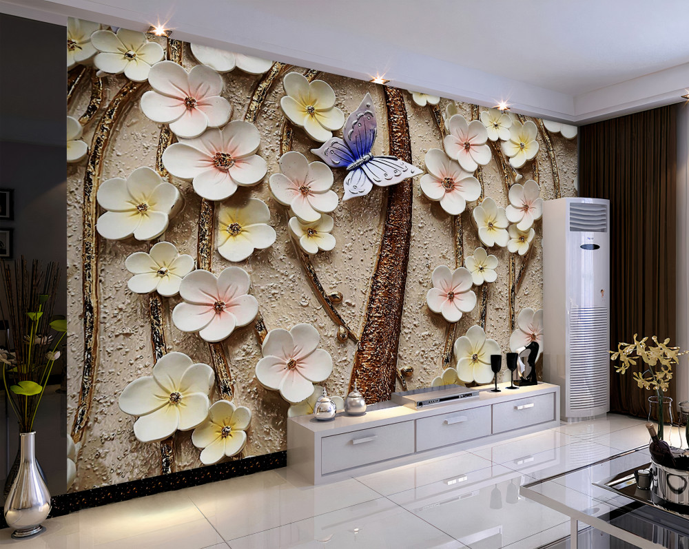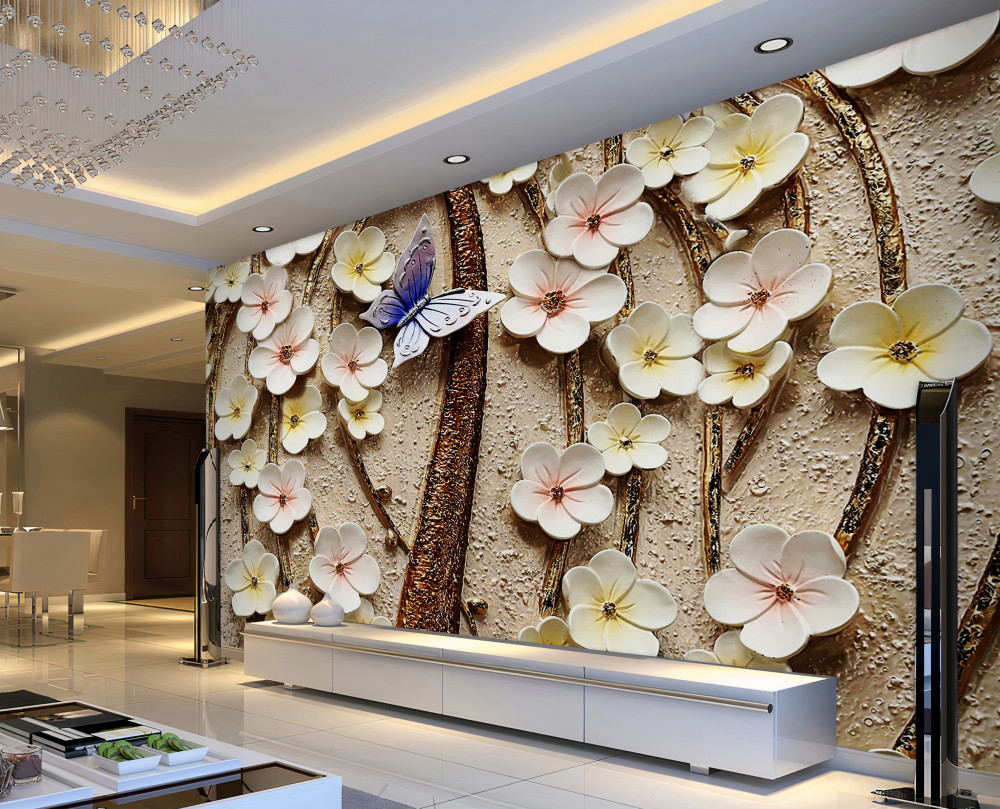 Tapeta Fototapeta delikatne kwiaty i niebieski motyl (artykuł a92519 ) z kategorii Fototapety 3D