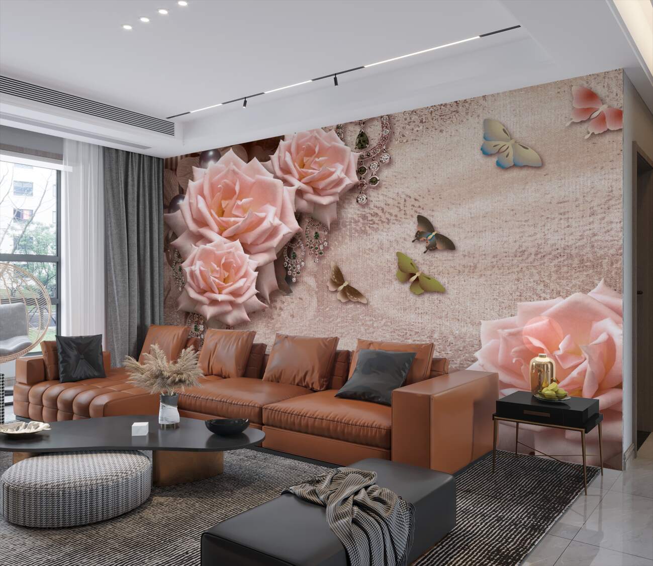 Tapeta Fototapeta Delikatne róże i motyle (artykuł a100139 ) z kategorii Fototapety 3D