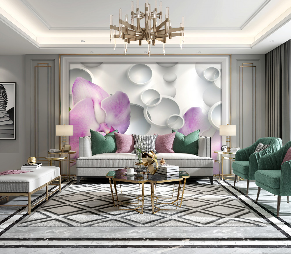 Tapeta Fototapeta delikatne różowe orchidee i pierścienie (artykuł a92059 ) z kategorii Fototapety 3D
