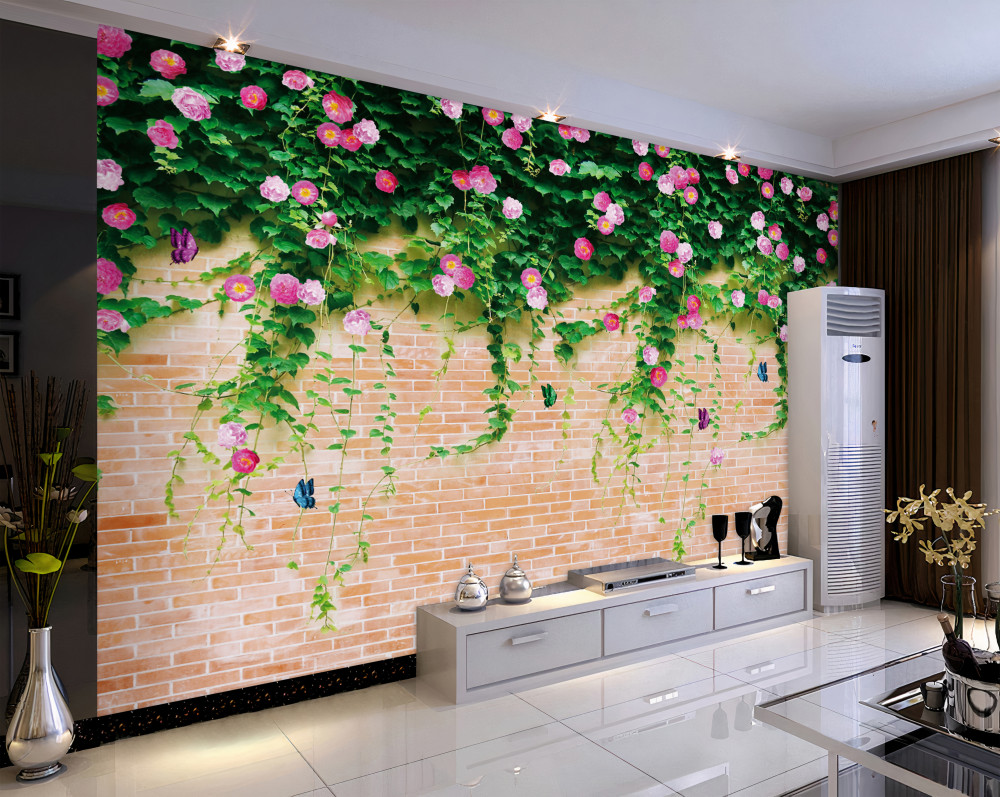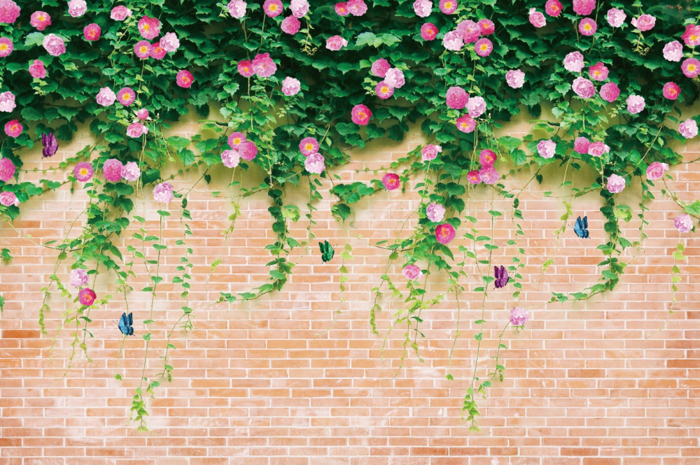 Tapeta Fototapeta delikatne różowe róże na ścianie z cegły (artykuł a91888 ) z kategorii Fototapety 3D