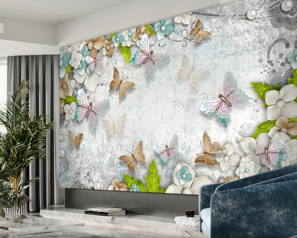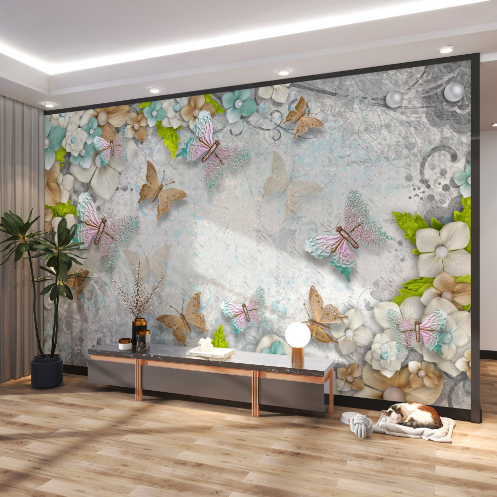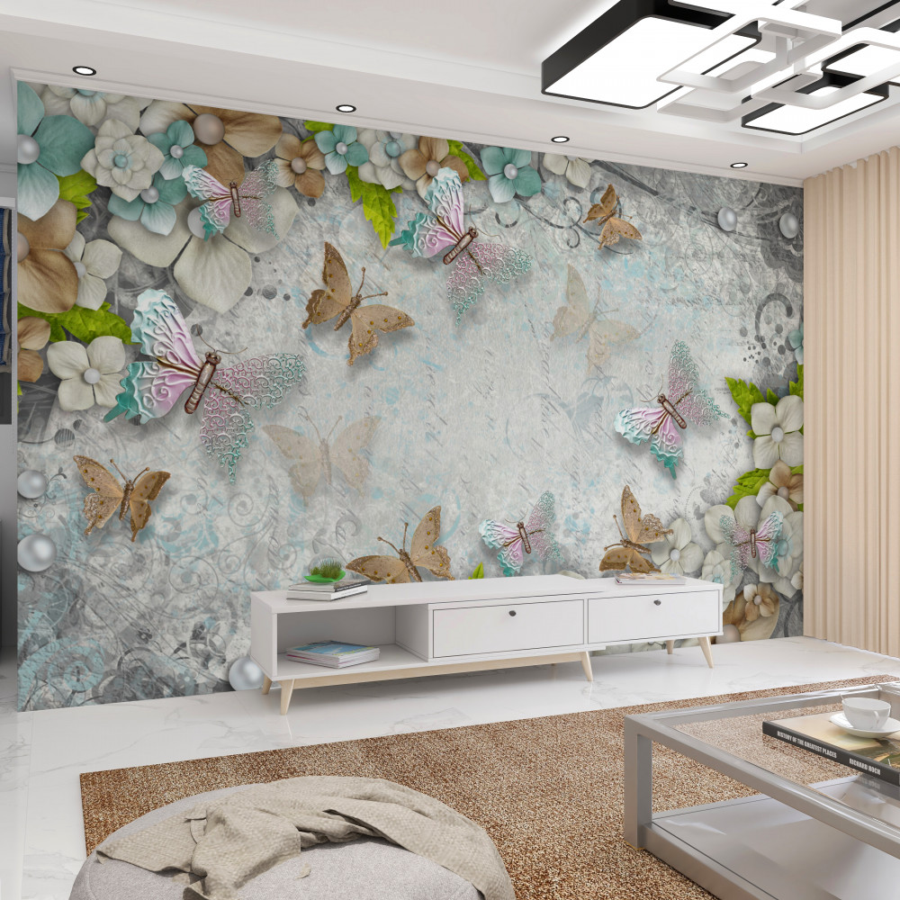 Tapeta Fototapeta delikatne tło kwiatów i motyli (artykuł a91126 ) z kategorii Fototapety 3D