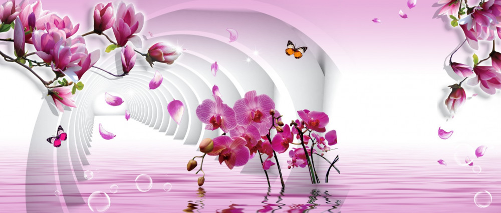 Tapeta Fototapeta delikatny kolaż fioletowych kwiatów magnolii (artykuł a91025 ) z kategorii Fototapety 3D