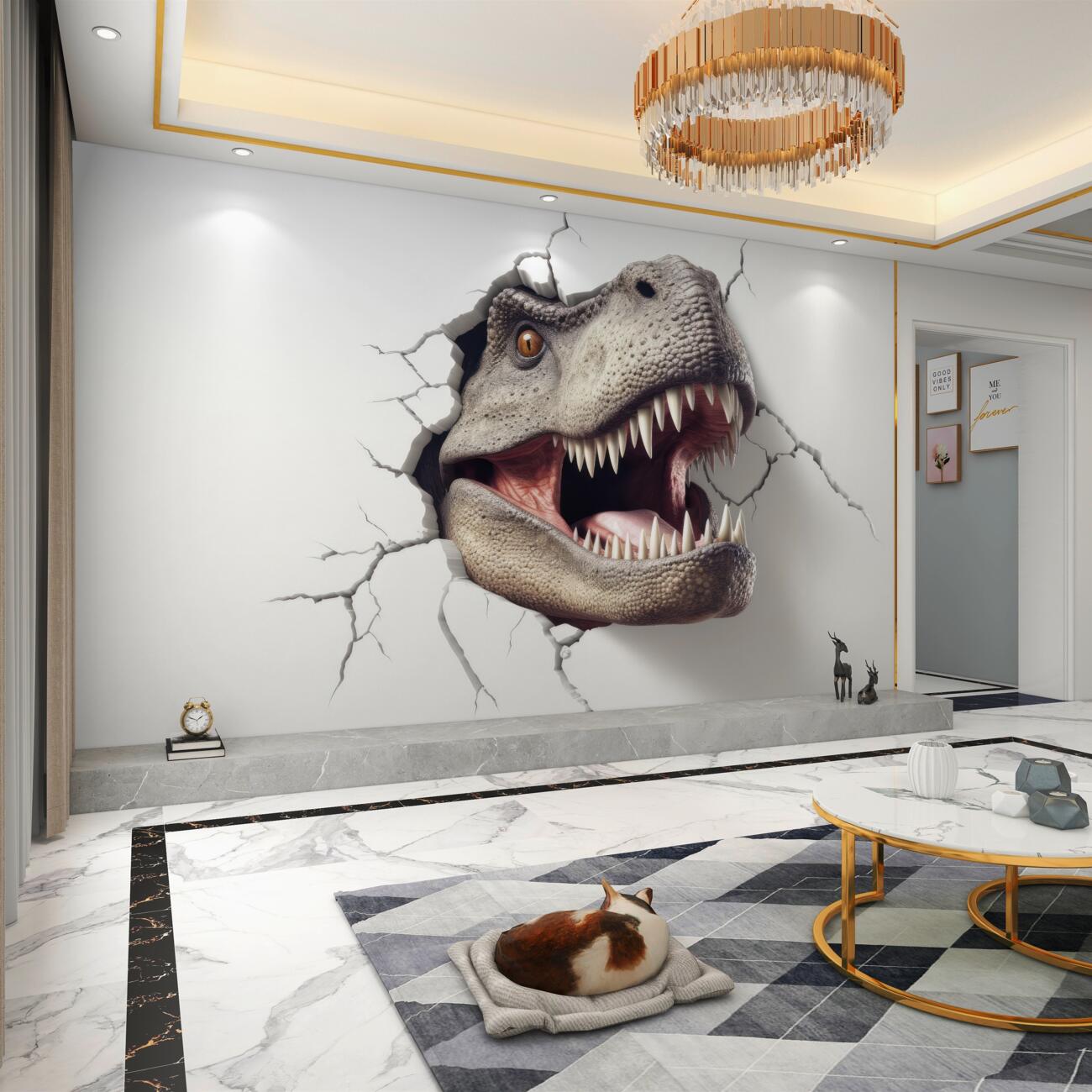Tapeta Fototapeta Dinozaur próbuje zniszczyć ścianę (artykuł u14707 ) z kategorii Fototapety 3D