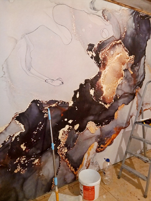 W celu zwiększenia odporności na wilgoć tapetę należy zalaminować lakierem.