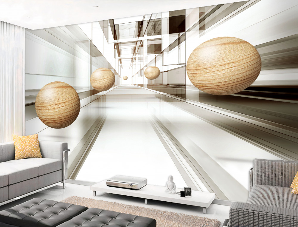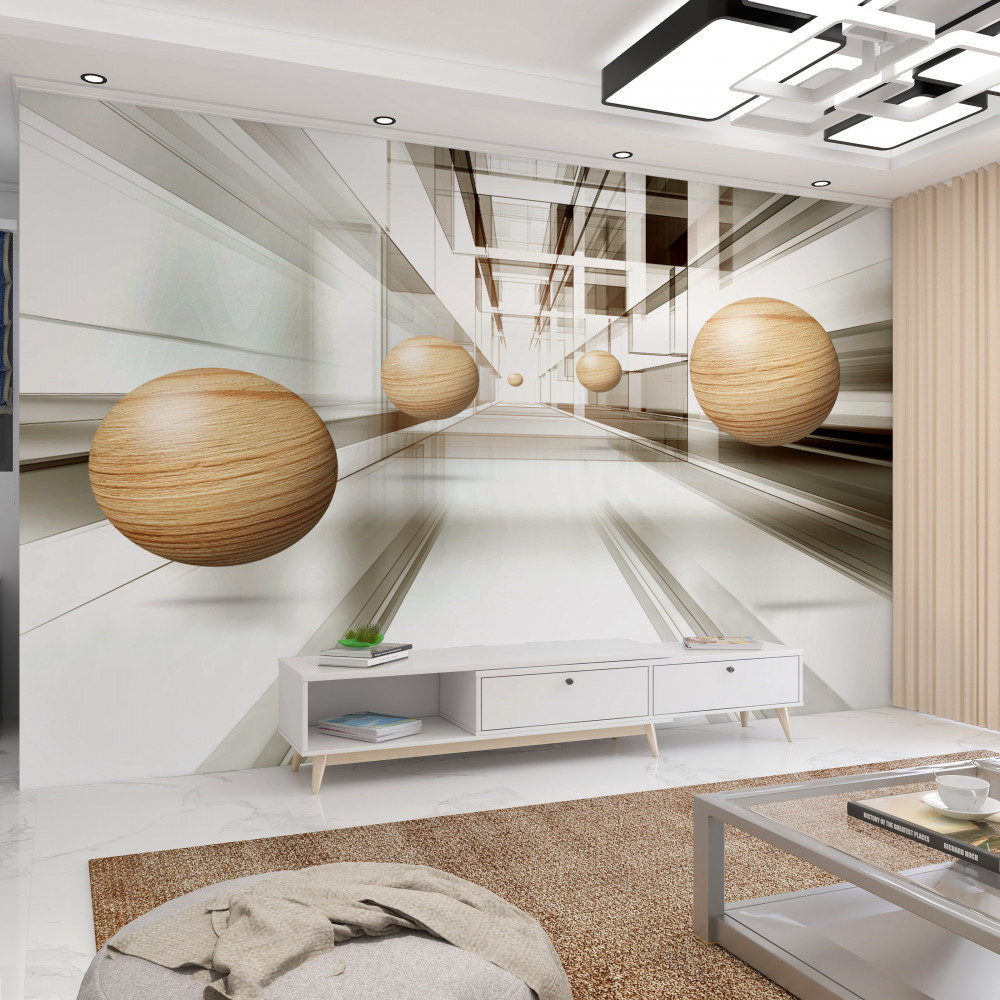 Tapeta Fototapeta drewniane kule przesuwają się w nieskończoność (artykuł a91179 ) z kategorii Fototapety 3D