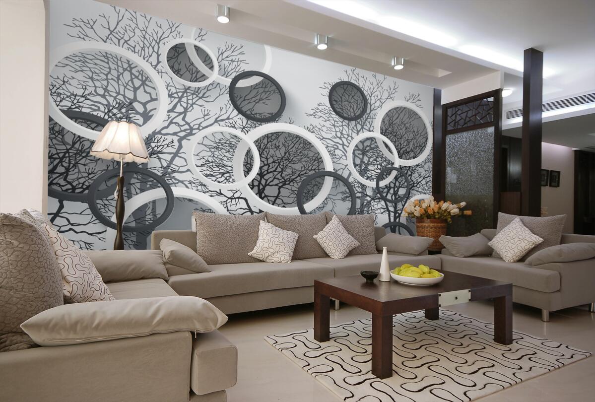 Tapeta Fototapeta Drzewa i zamglone kręgi (artykuł a98372 ) z kategorii Fototapety 3D