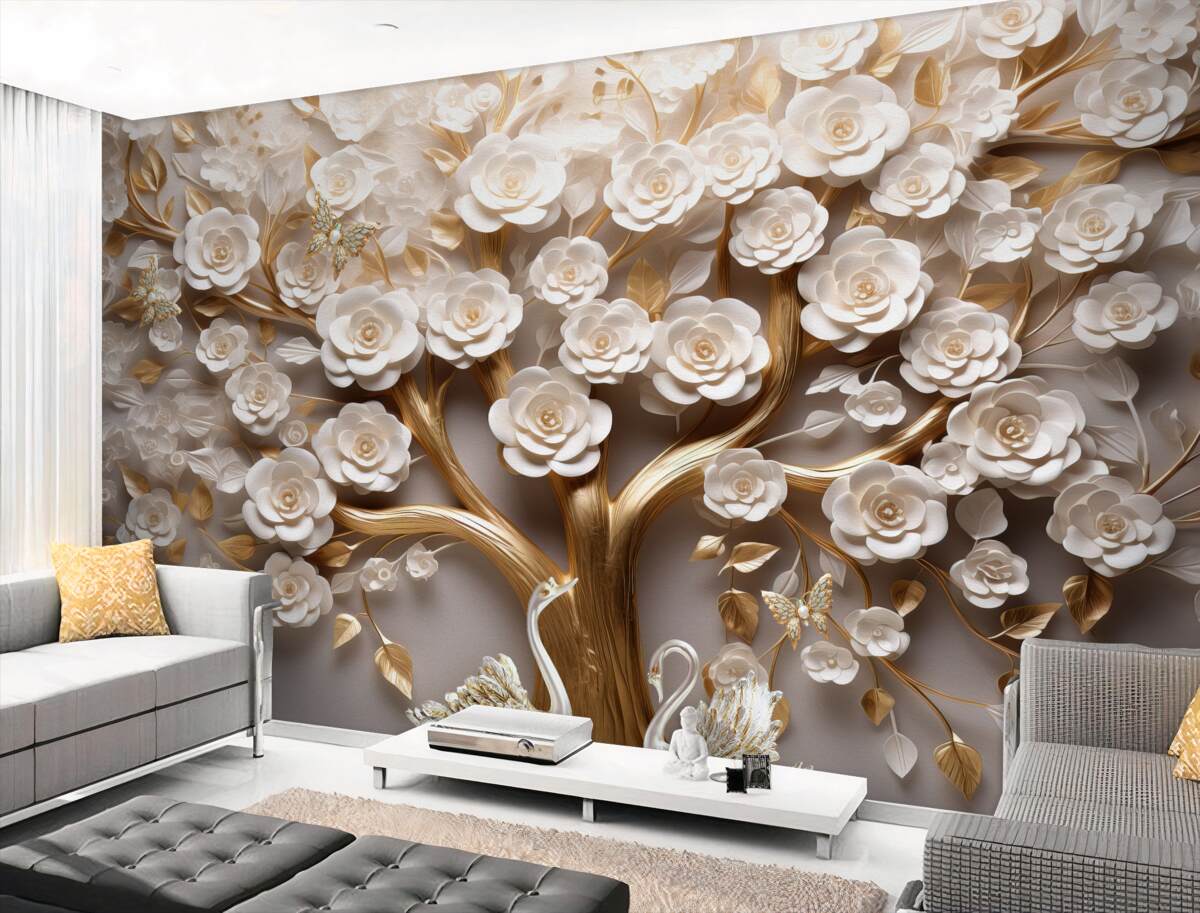 Tapeta Fototapeta Drzewo wolumetryczne z bujnymi kwiatami (artykuł a98531 ) z kategorii Fototapety 3D