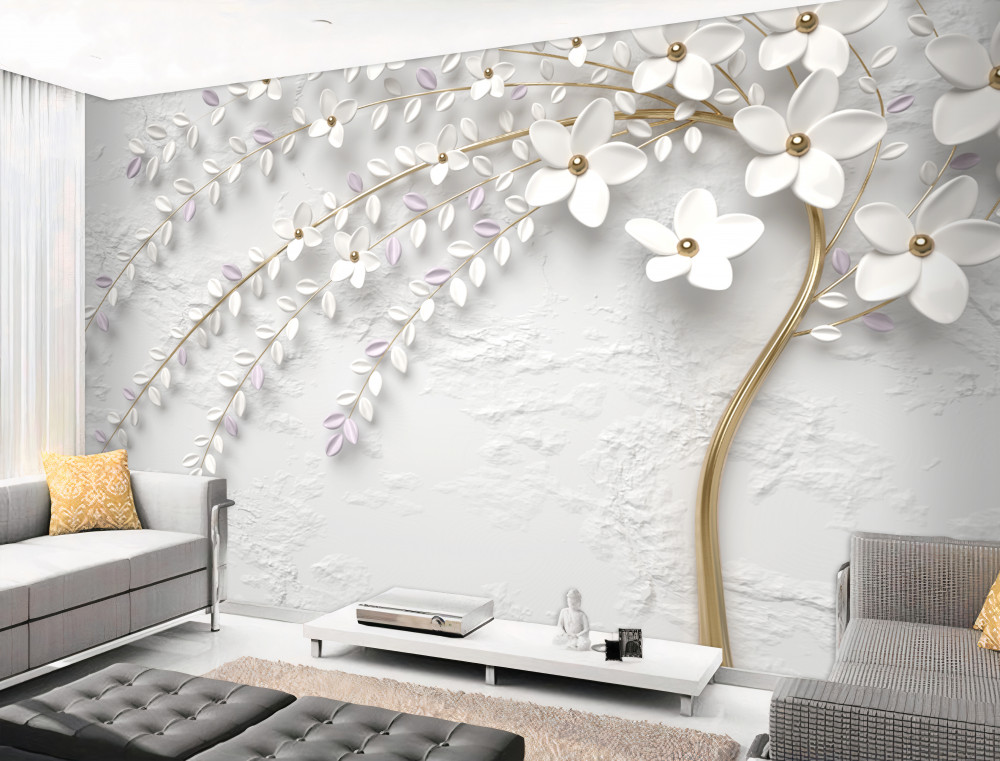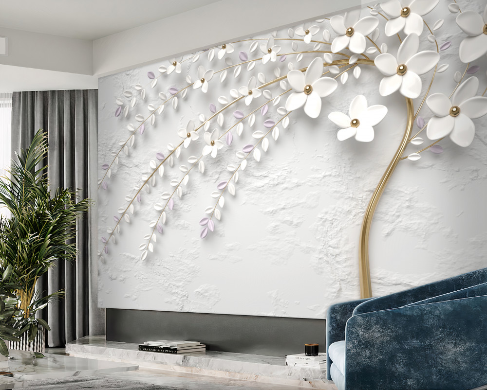 Tapeta Fototapeta drzewo z białymi wiosennymi kwiatami (artykuł a91158 ) z kategorii Fototapety 3D