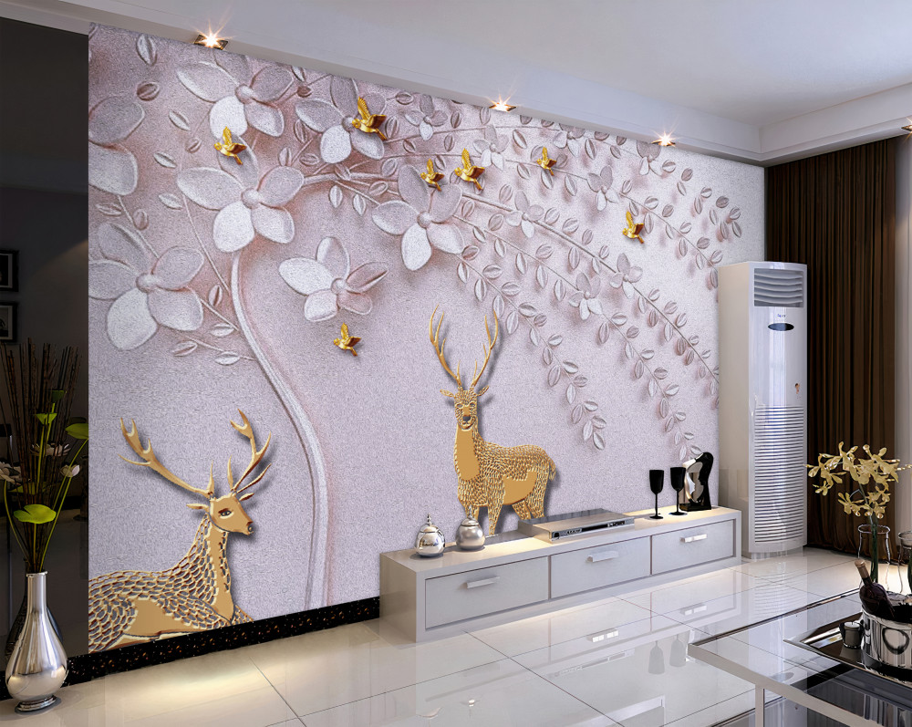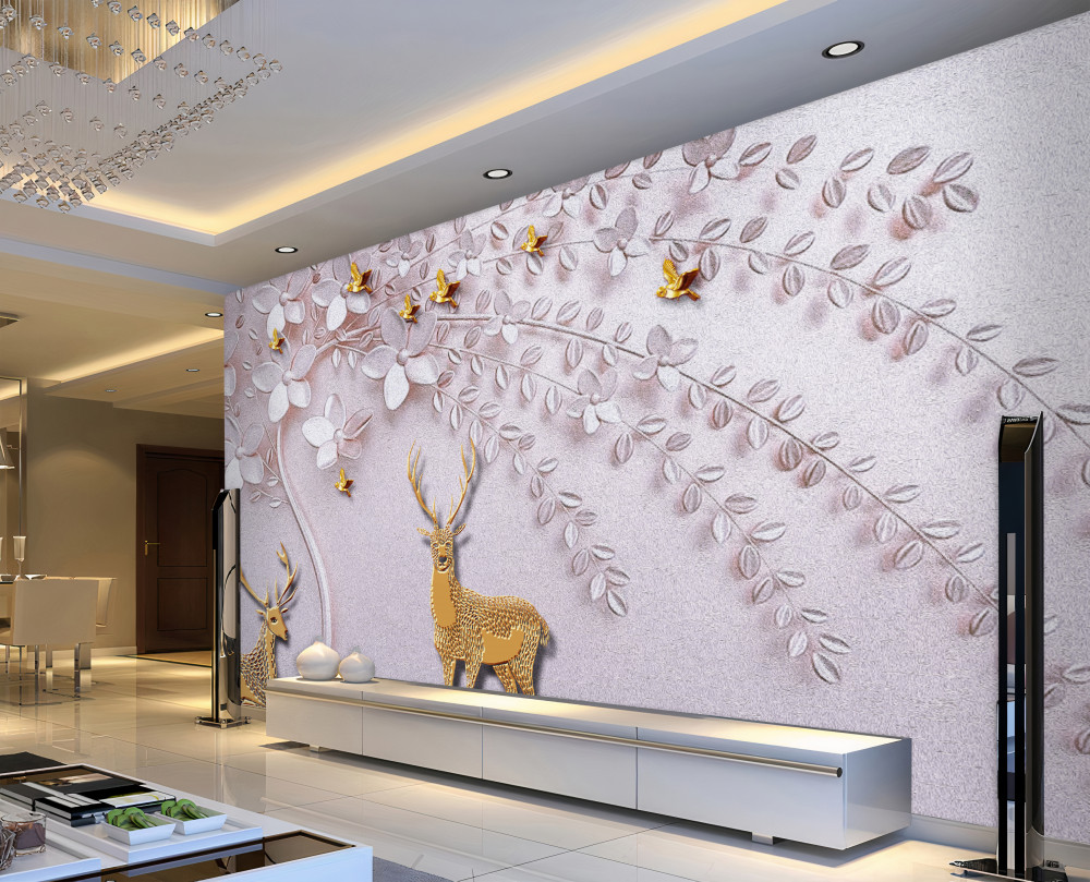 Tapeta Fototapeta dumny złoty jeleń pod kwitnącym drzewem (artykuł pb7812 ) z kategorii Fototapety 3D