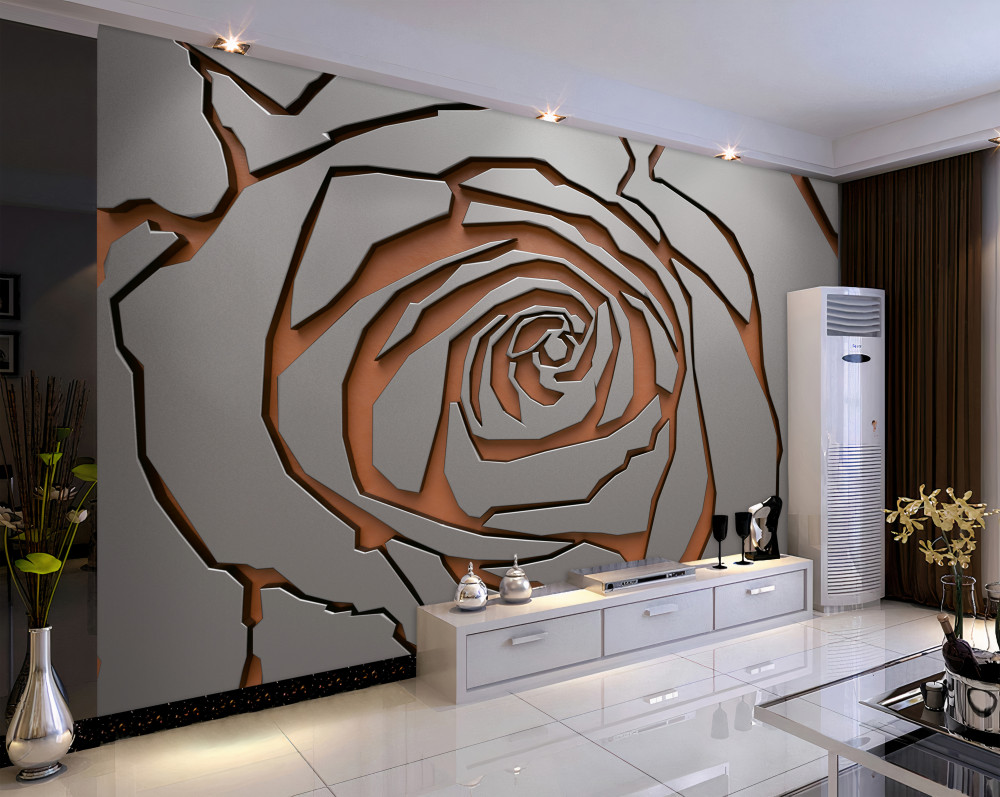 Tapeta Fototapeta duża róża wyrzeźbiona na ścianie (artykuł a93764 ) z kategorii Fototapety 3D