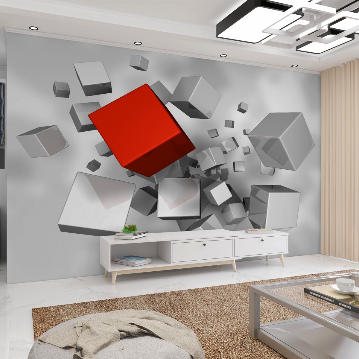 Tapeta Fototapeta duże białe kostki i jedna czerwona (artykuł a97676 ) z kategorii Fototapety 3D