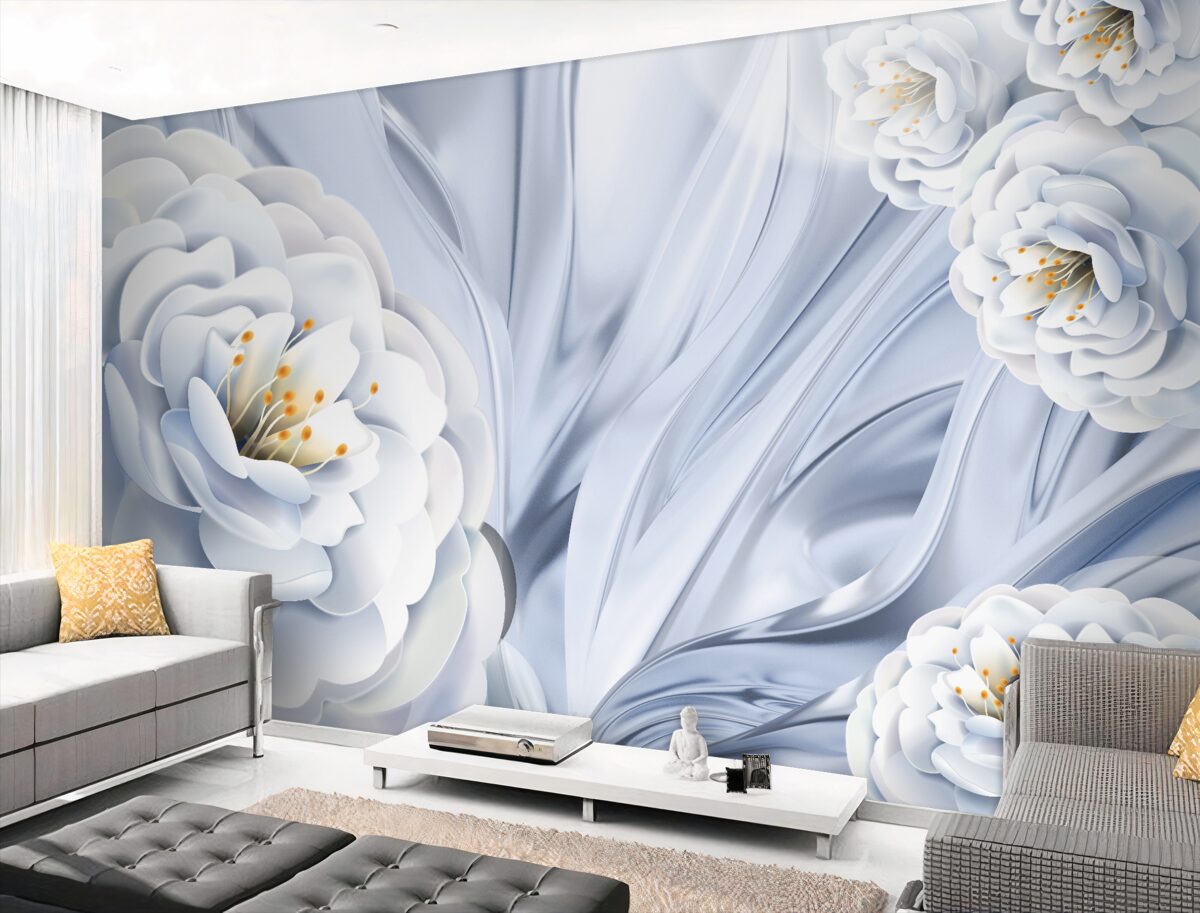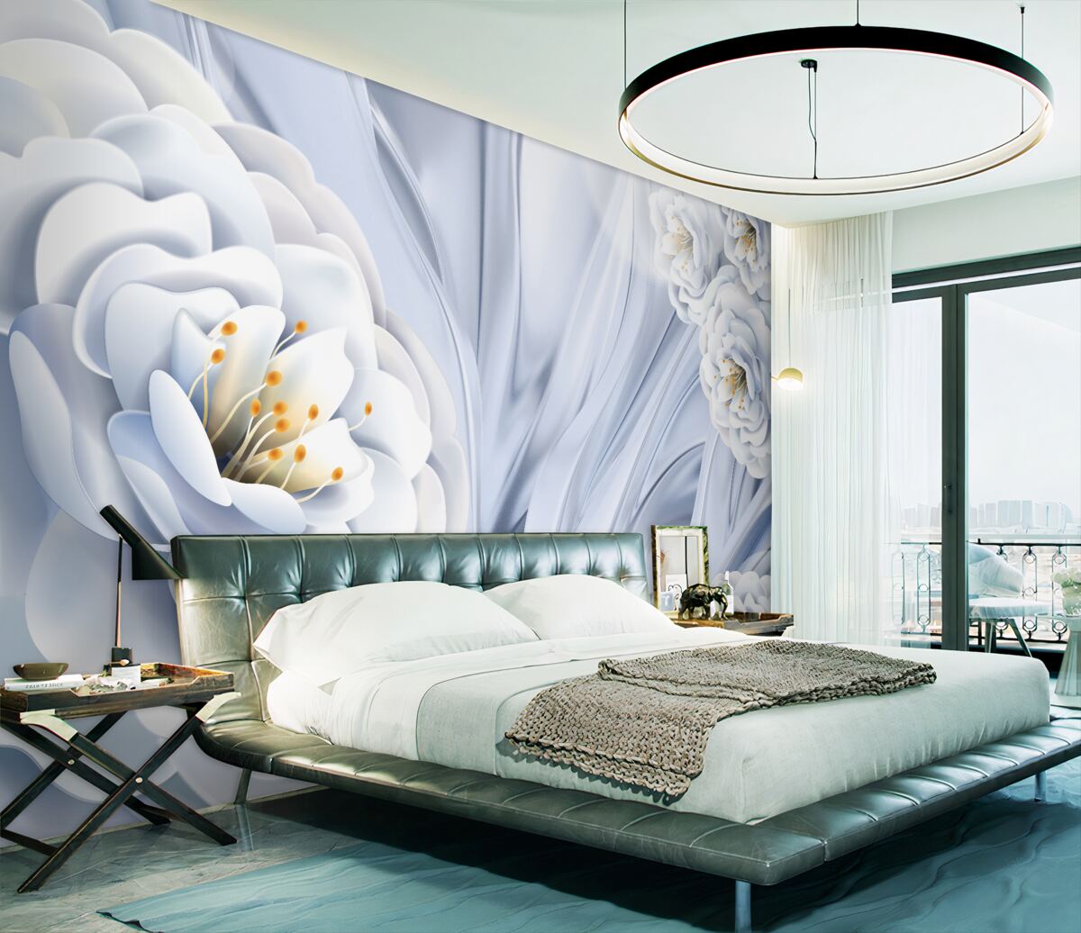 Tapeta Fototapeta Duże białe pąki i liście (artykuł a98382 ) z kategorii Fototapety 3D