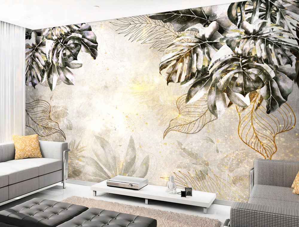 Tapeta Fototapeta duże liście monstery w jesiennej kompozycji (artykuł a88368 ) z kategorii Fototapety 3D