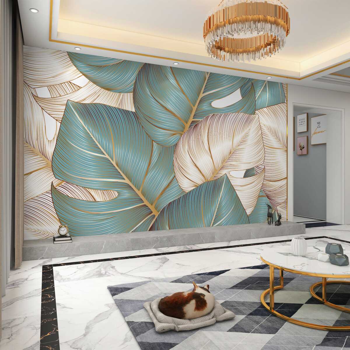 Tapeta Fototapeta Duże zielone i złote liście (artykuł a92843 ) z kategorii Fototapety 3D