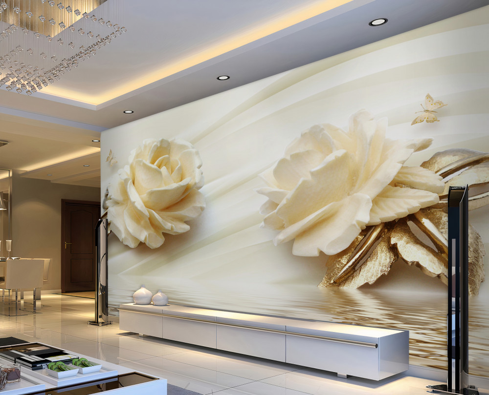 Tapeta Fototapeta dwie duże beżowe róże (artykuł a93751 ) z kategorii Fototapety 3D