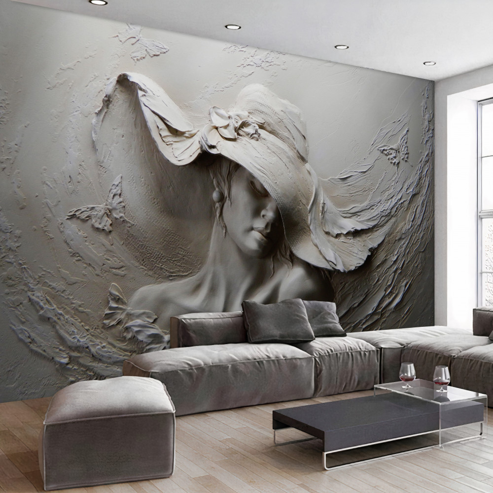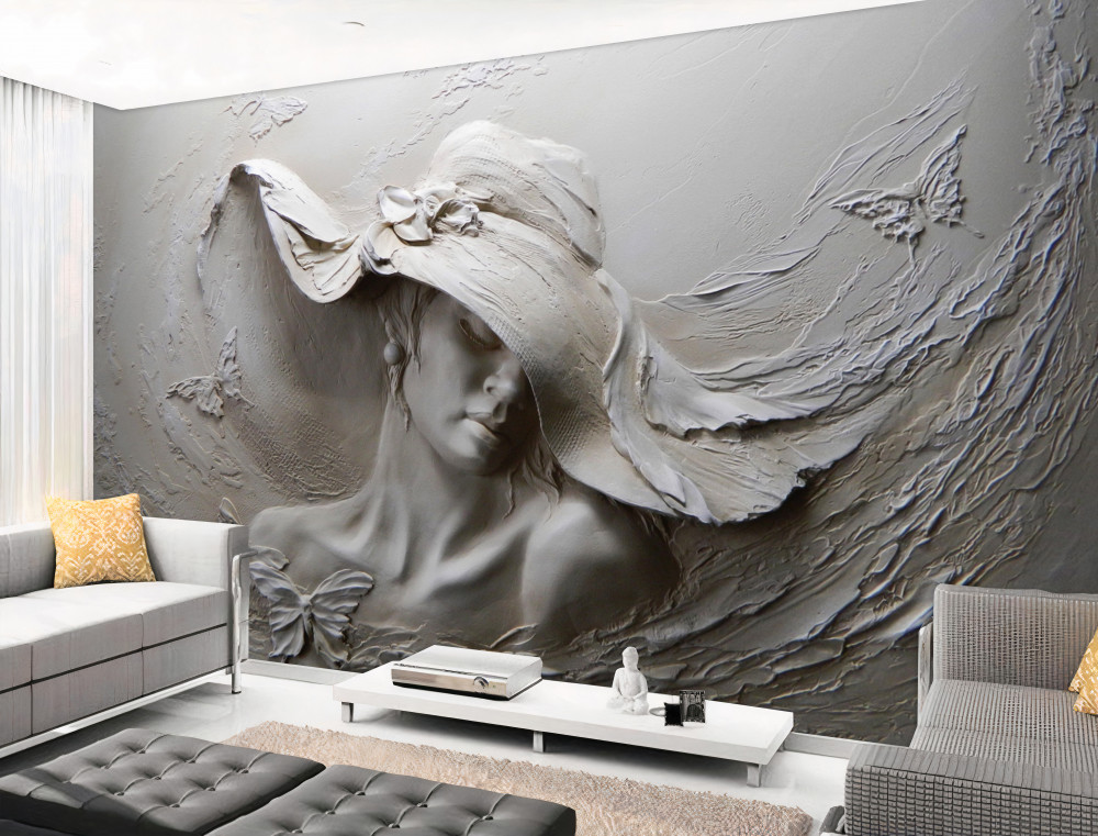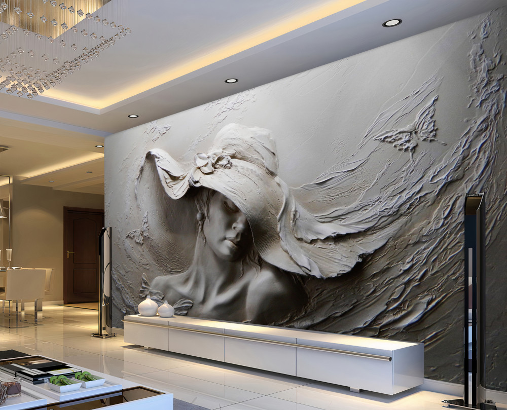 Tapeta Fototapeta dziewczyna z płaskorzeźbą w kapeluszu (artykuł a91275 ) z kategorii Fototapety 3D