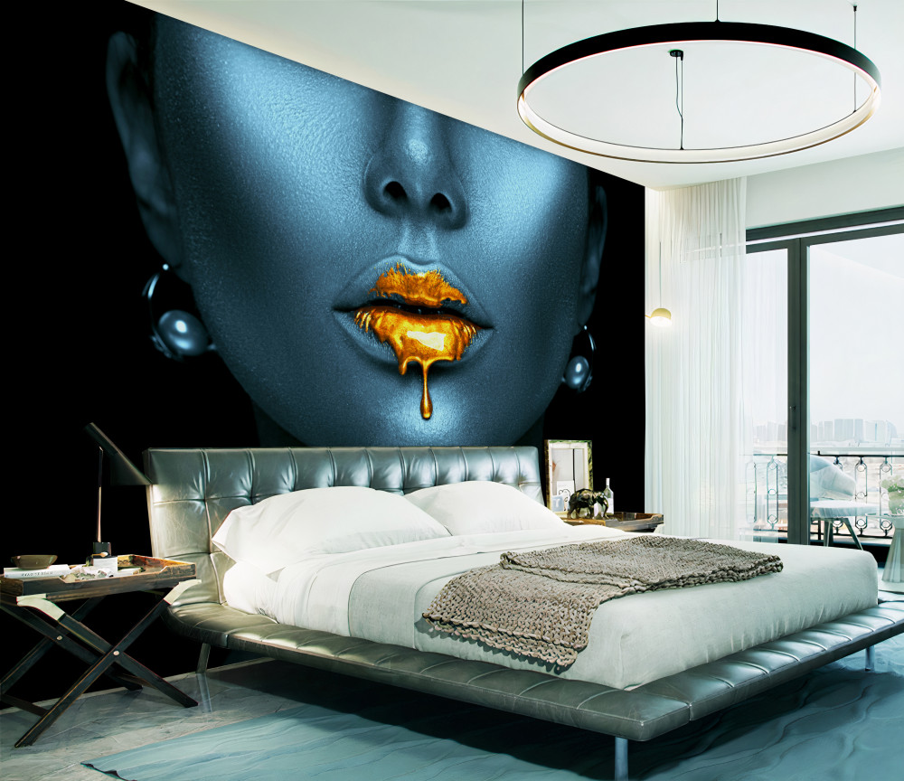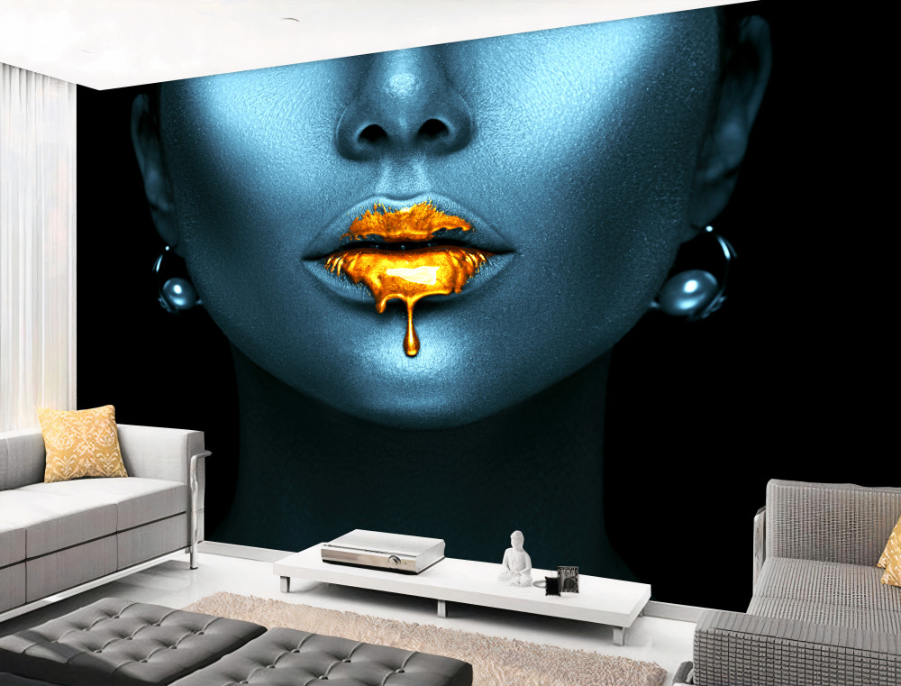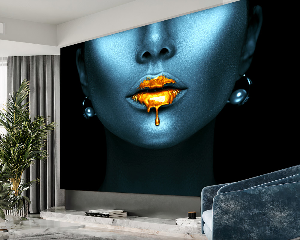 Tapeta Fototapeta dziewczyna ze złotą farbą do ust (artykuł a93176 ) z kategorii Fototapety 3D