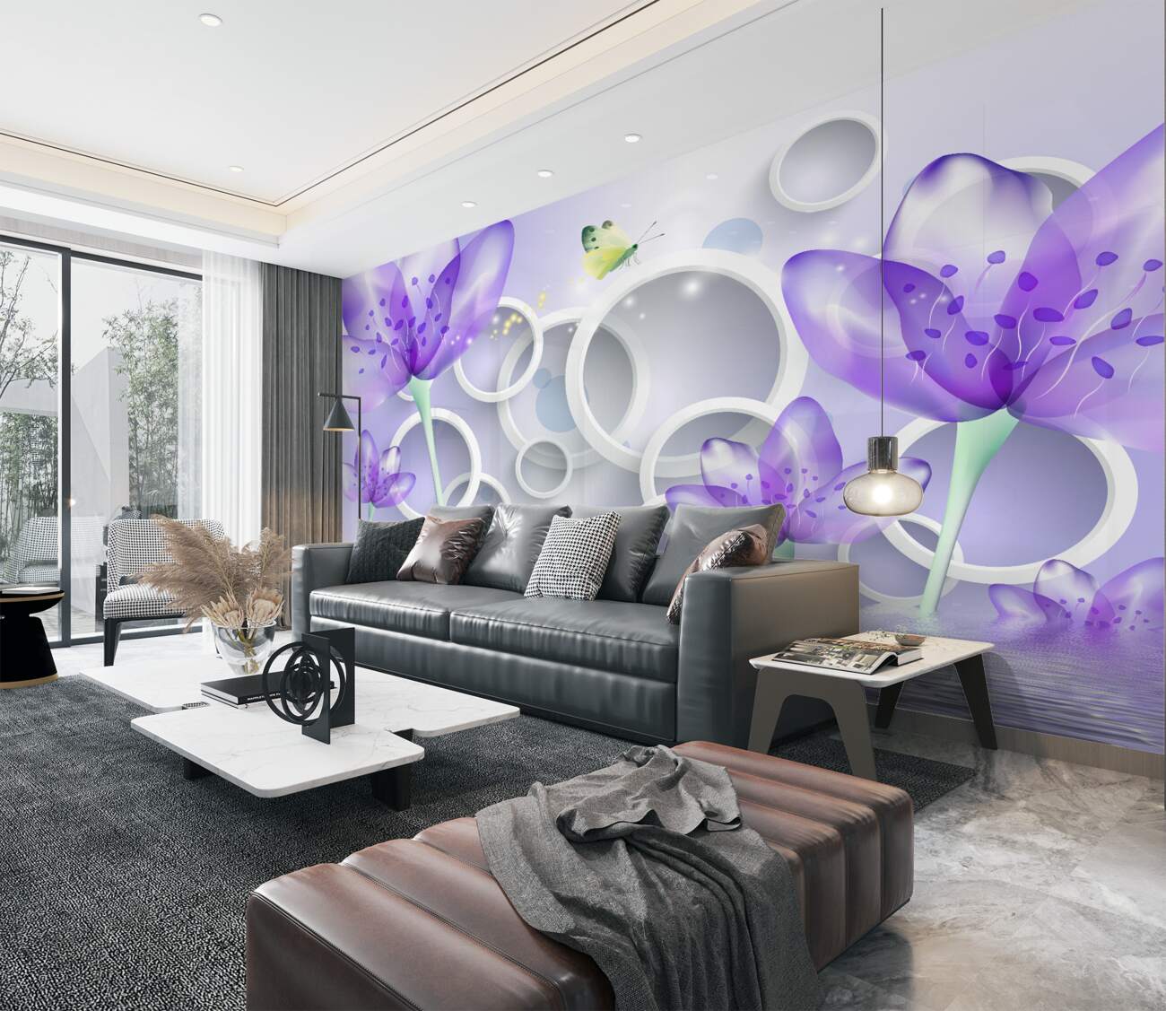 Tapeta Fototapeta Fioletowe kwiaty i abstrakcja wody (artykuł a100186 ) z kategorii Fototapety 3D