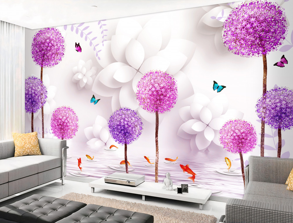 Tapeta Fototapeta fioletowy mniszek lekarski na wodzie (artykuł a89946 ) z kategorii Fototapety 3D