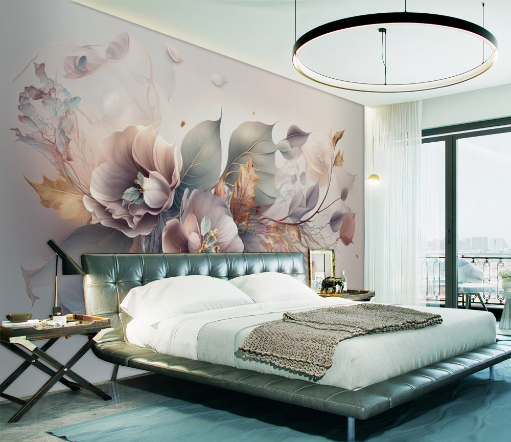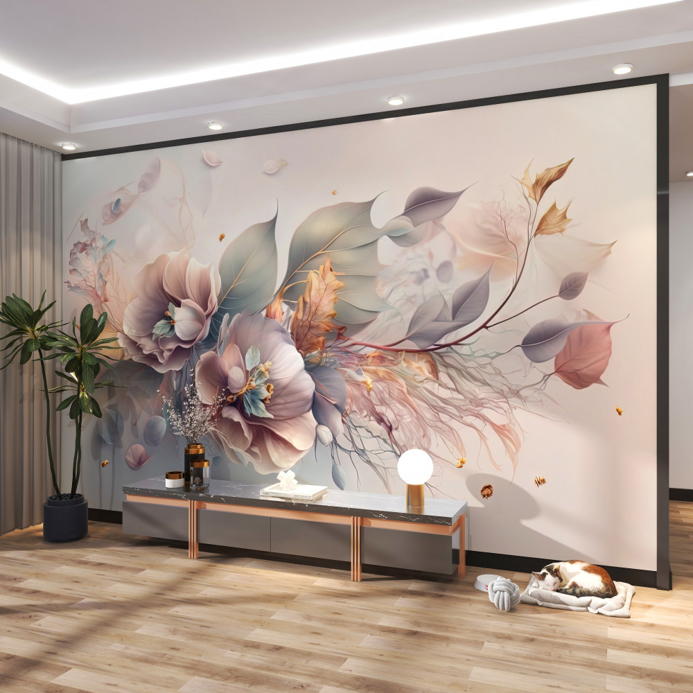 Tapeta Fototapeta gałąź pięknych kwiatów na jasnym tle (artykuł a92926 ) z kategorii Fototapety 3D